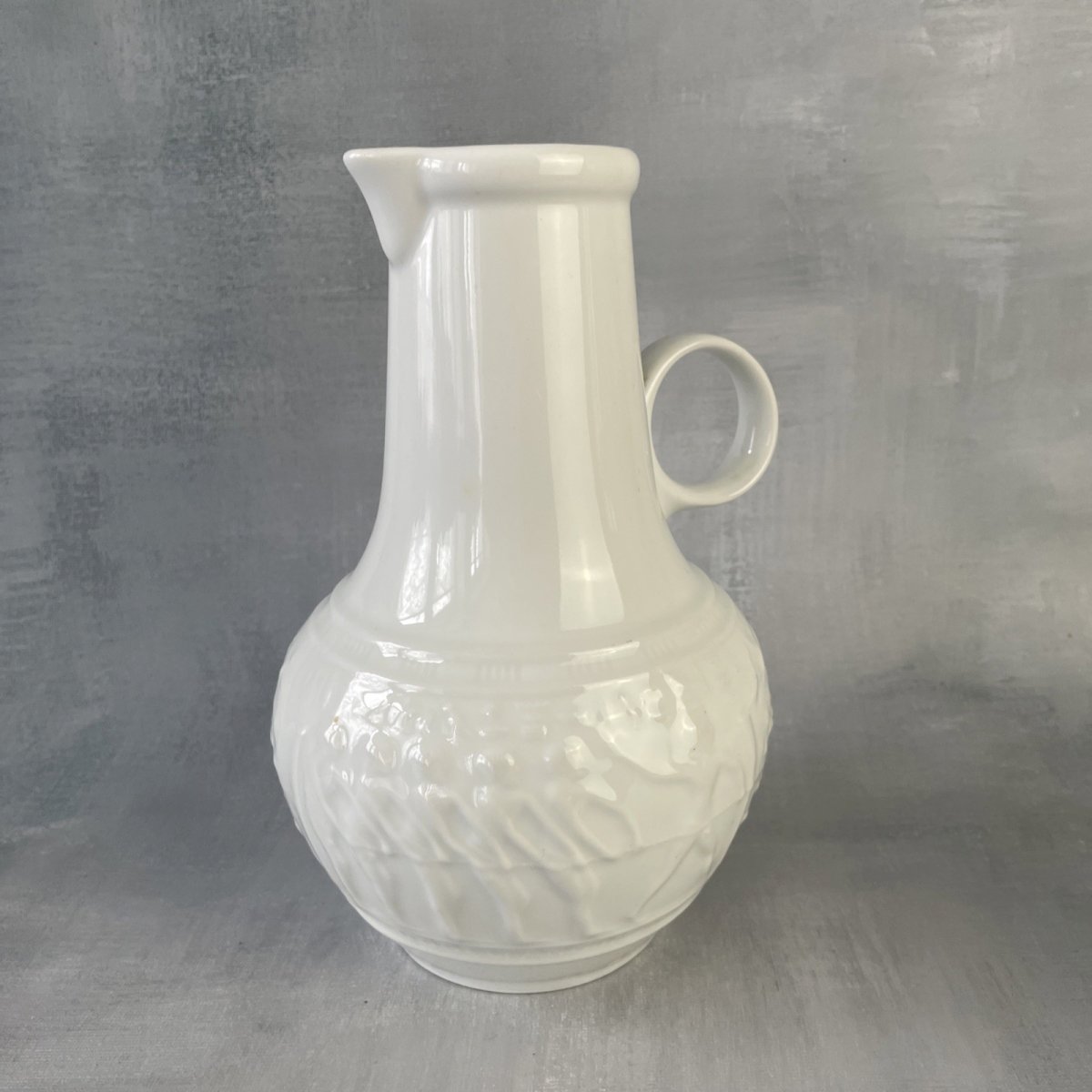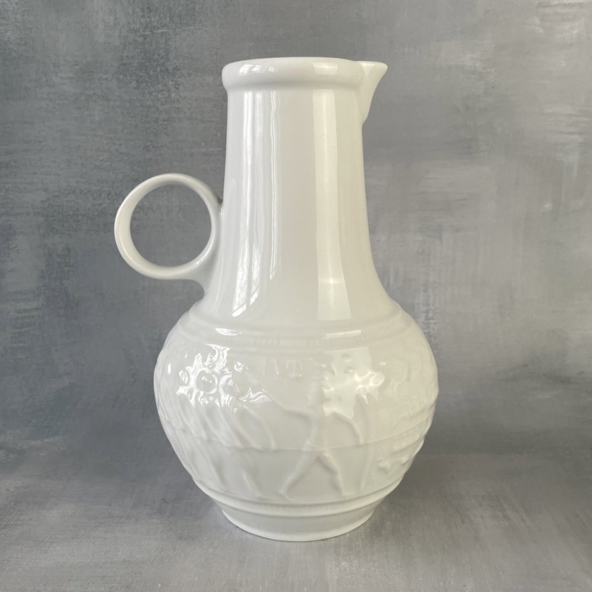 Grande verseuse pichet carafe jug élégante porcelaine blanche à décor égyptien