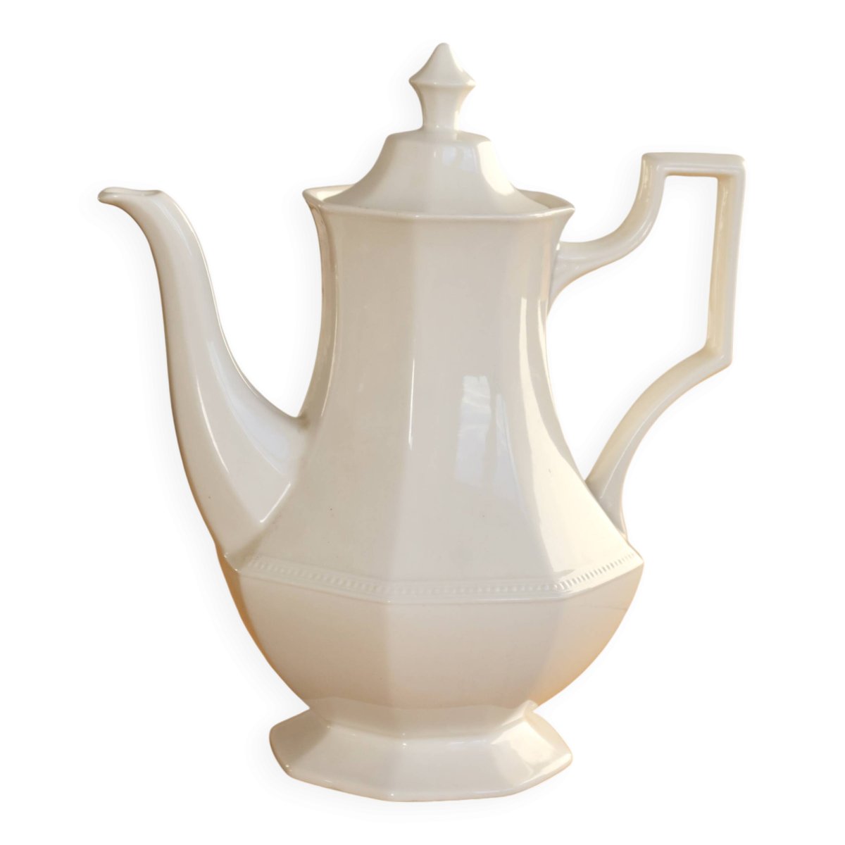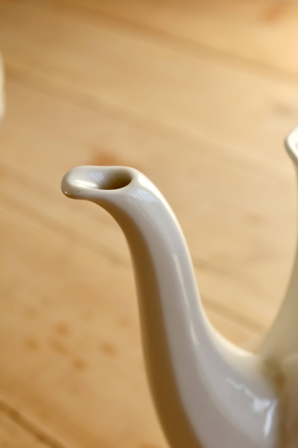 Grande verseuse en porcelaine anglaise Johnson Brothers, modèle Perle, au design élancé et élégant.