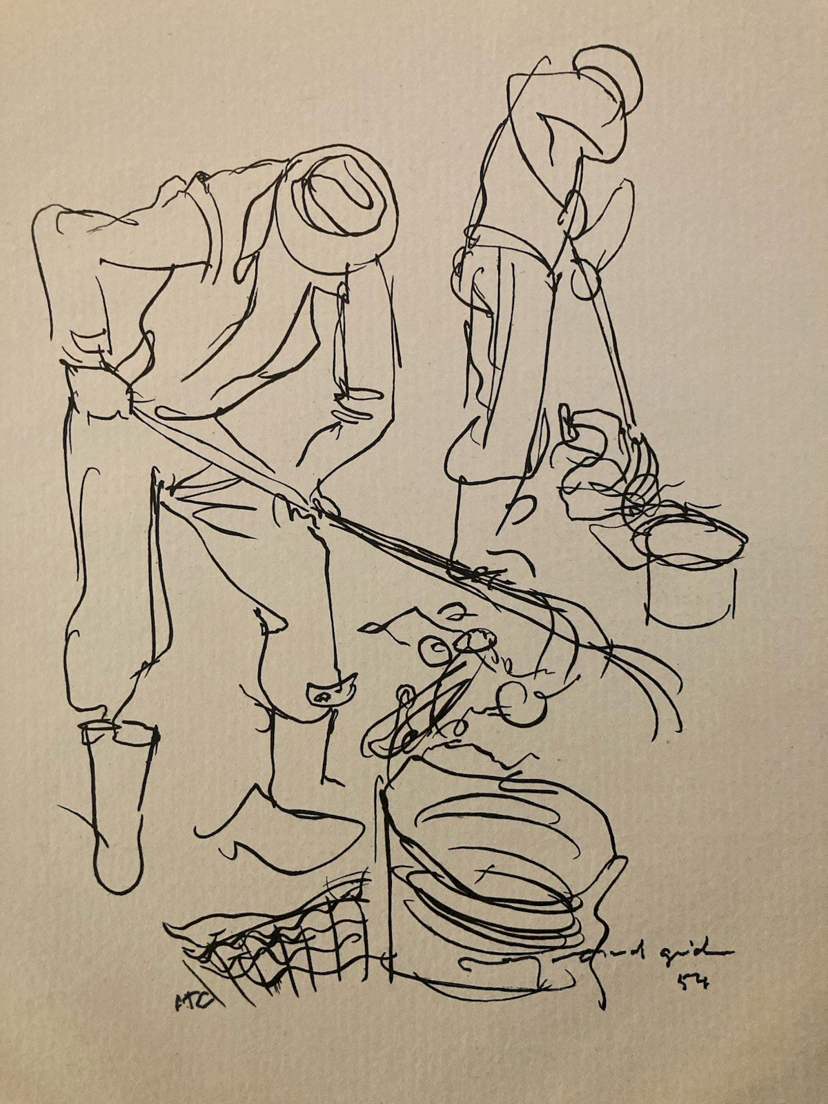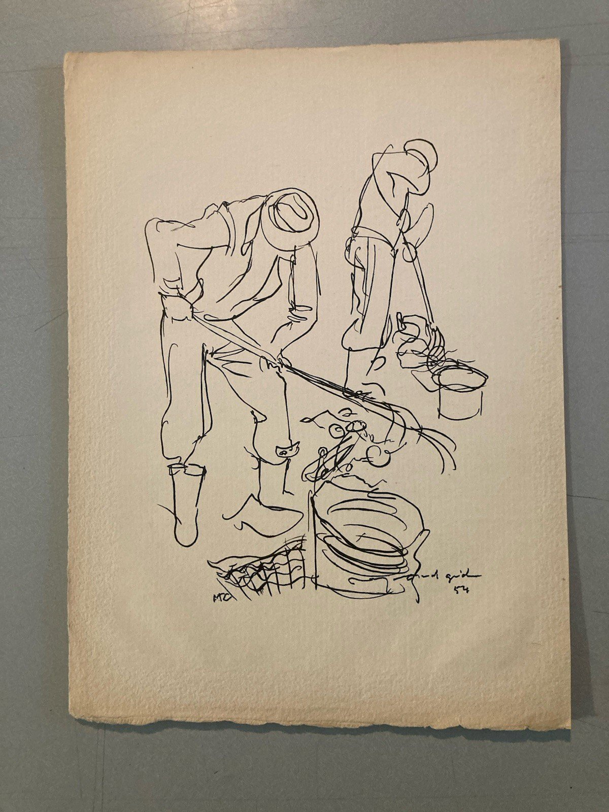 Gravure 1950 Art Lithographie Ancien Etching Raymond Gid Chiffonnier Originale