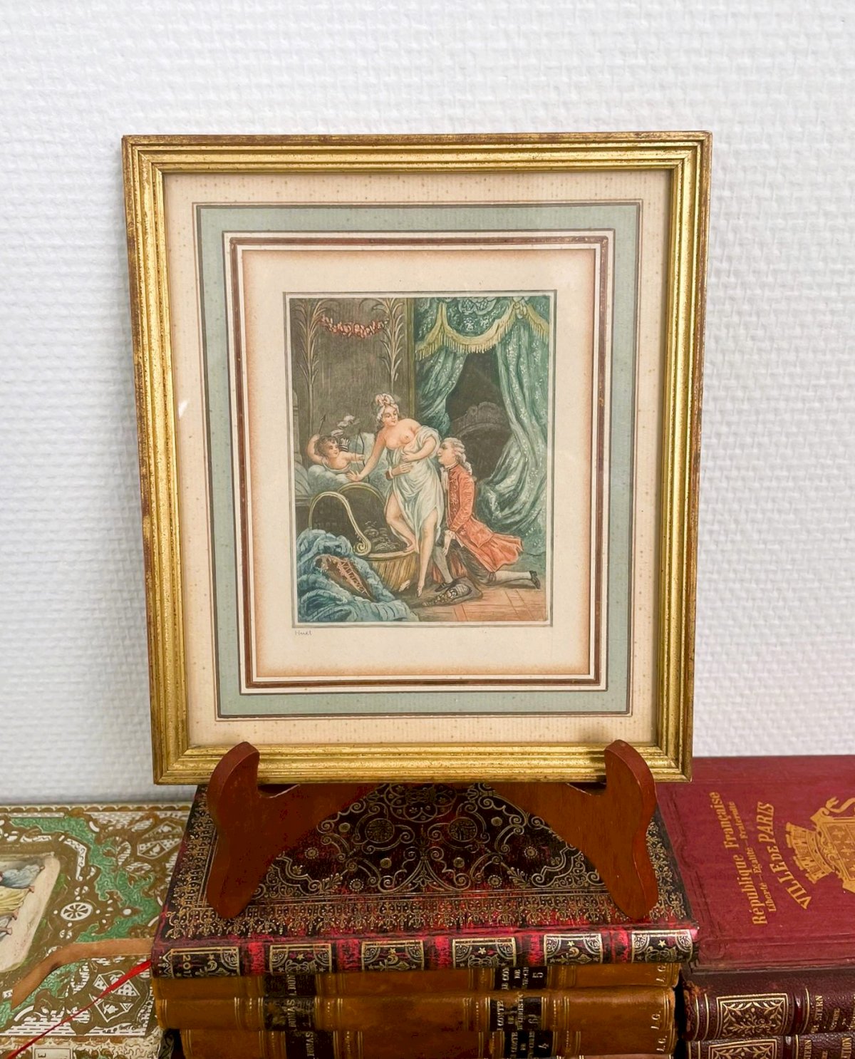 ancienne gravure signé Jean Droit à decor de femme elegante en bon etat