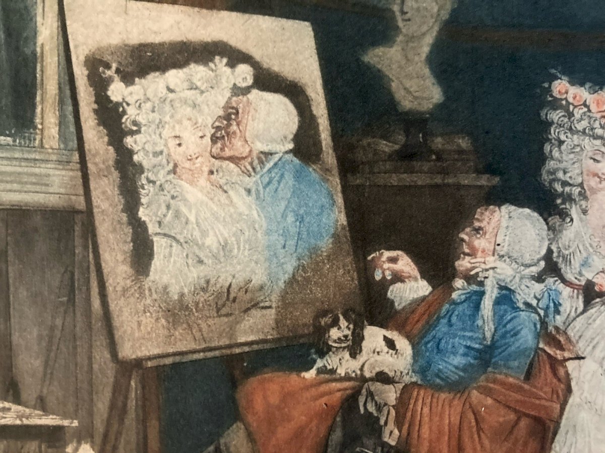 Gravure Aquatinte XVIIIe Les Deux Baisers 1786 Estampe Couleur Ancien Art