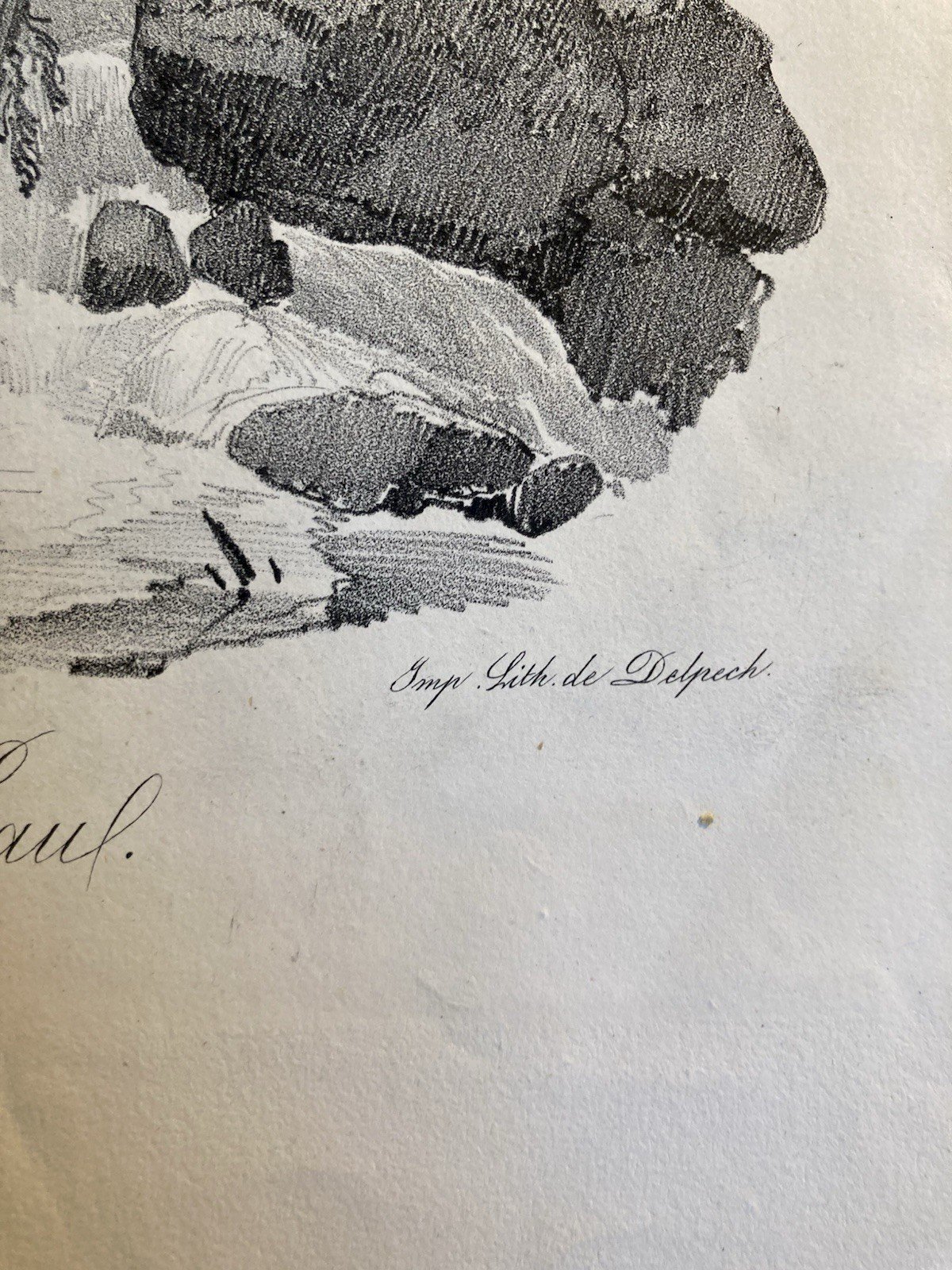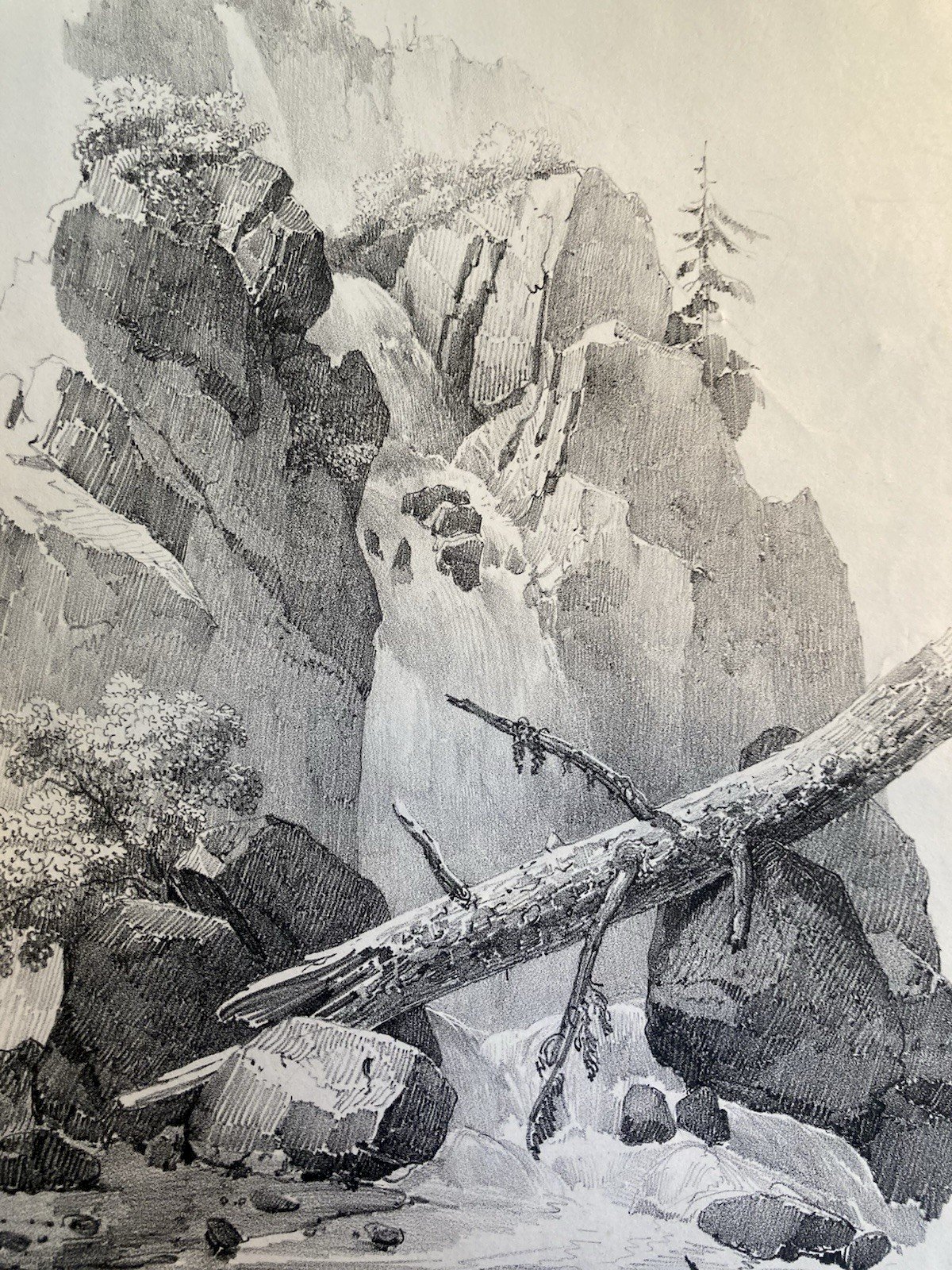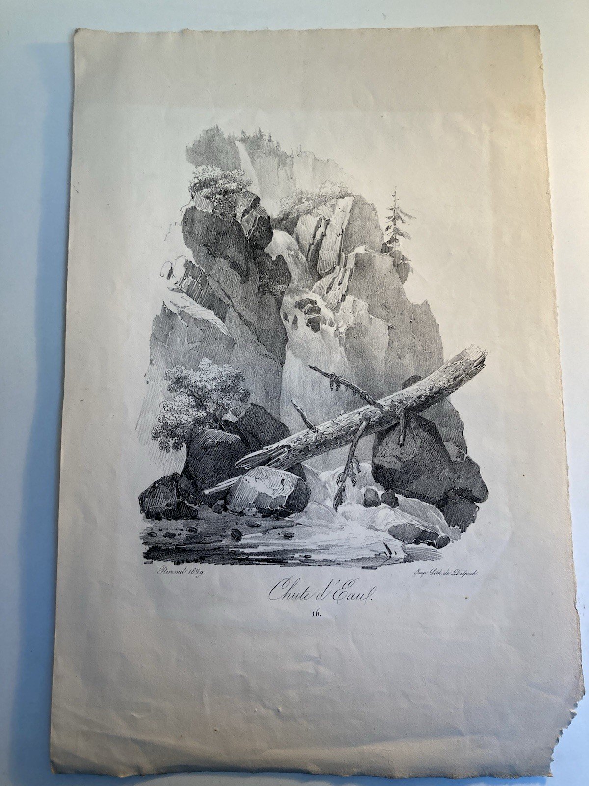 Gravure Arbre Chute Eau Tronc Delpech Remond 1829 Lithographie Ancien