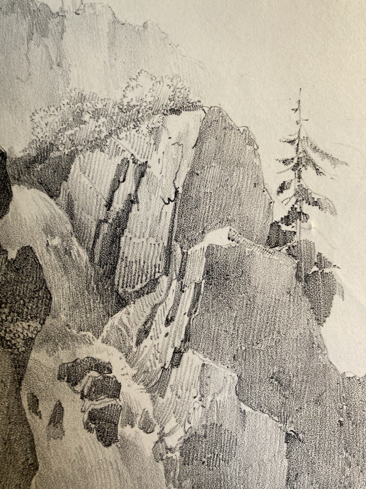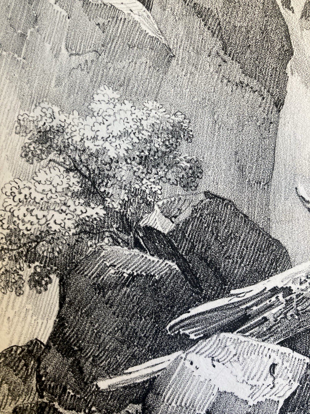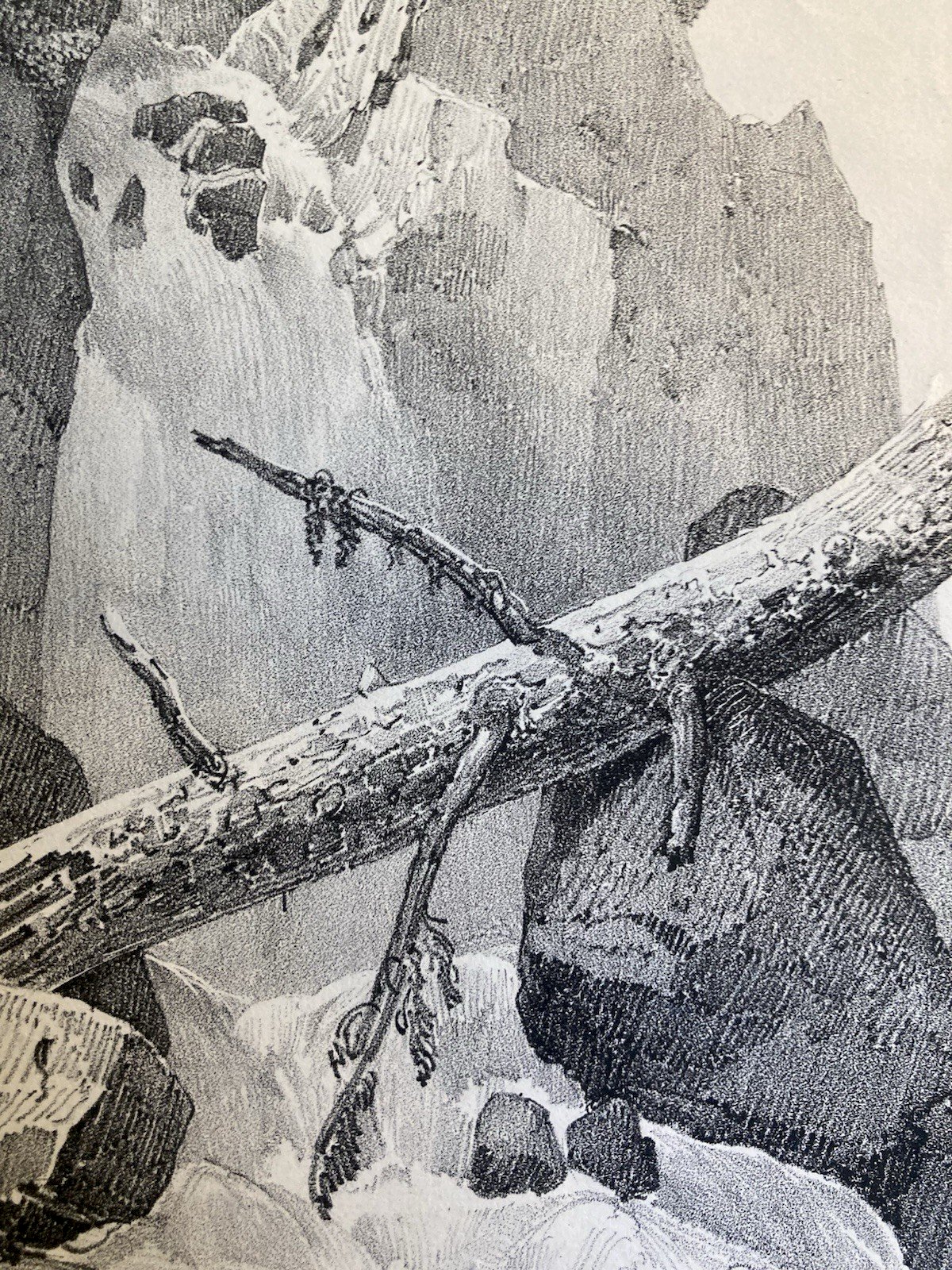 Gravure Arbre Chute Eau Tronc Delpech Remond 1829 Lithographie Ancien