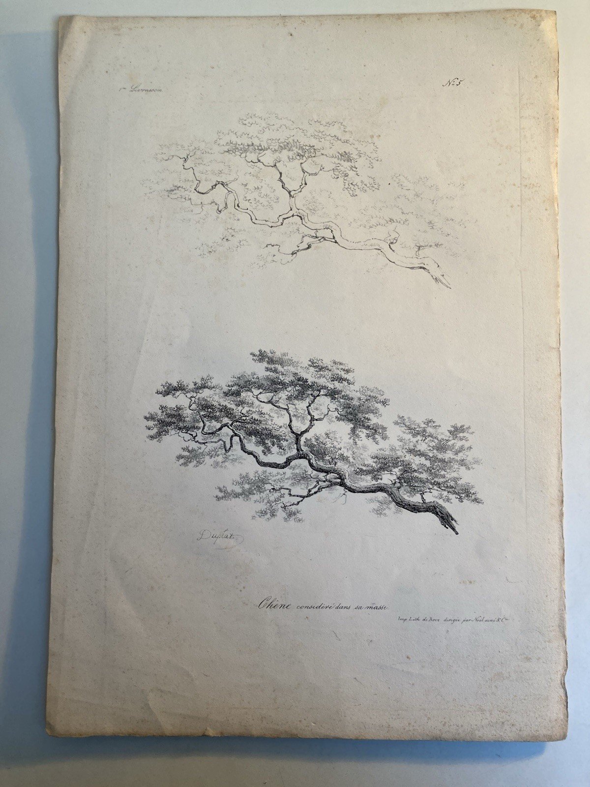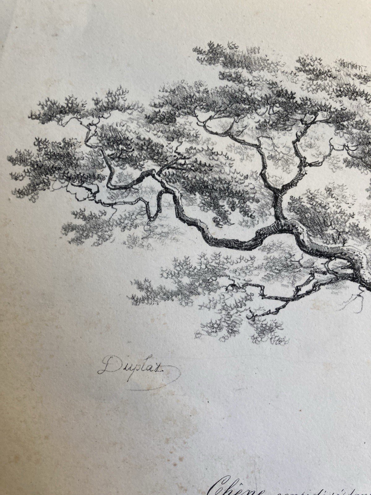 Gravure Arbre Feuillage Feuille Duplat Chêne Art Ancien Lithographie