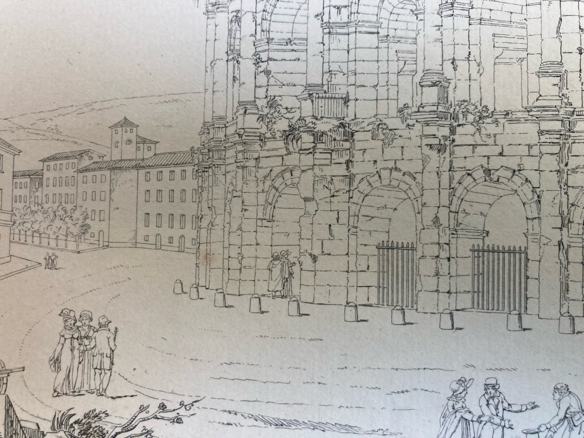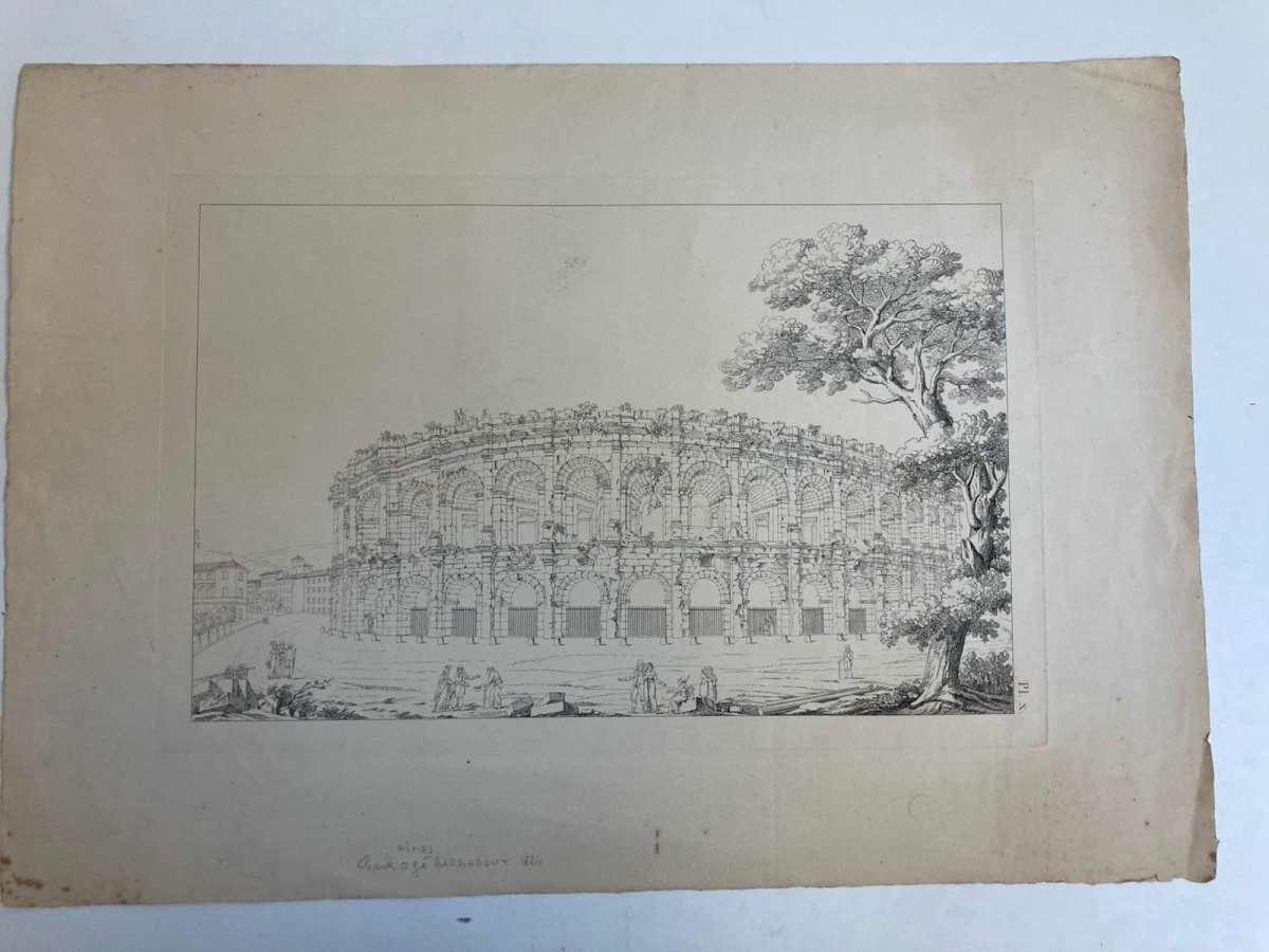 Gravure Architecture 1824 Charles Barbaroux XIXe Nîmes Arène Ancien Rome