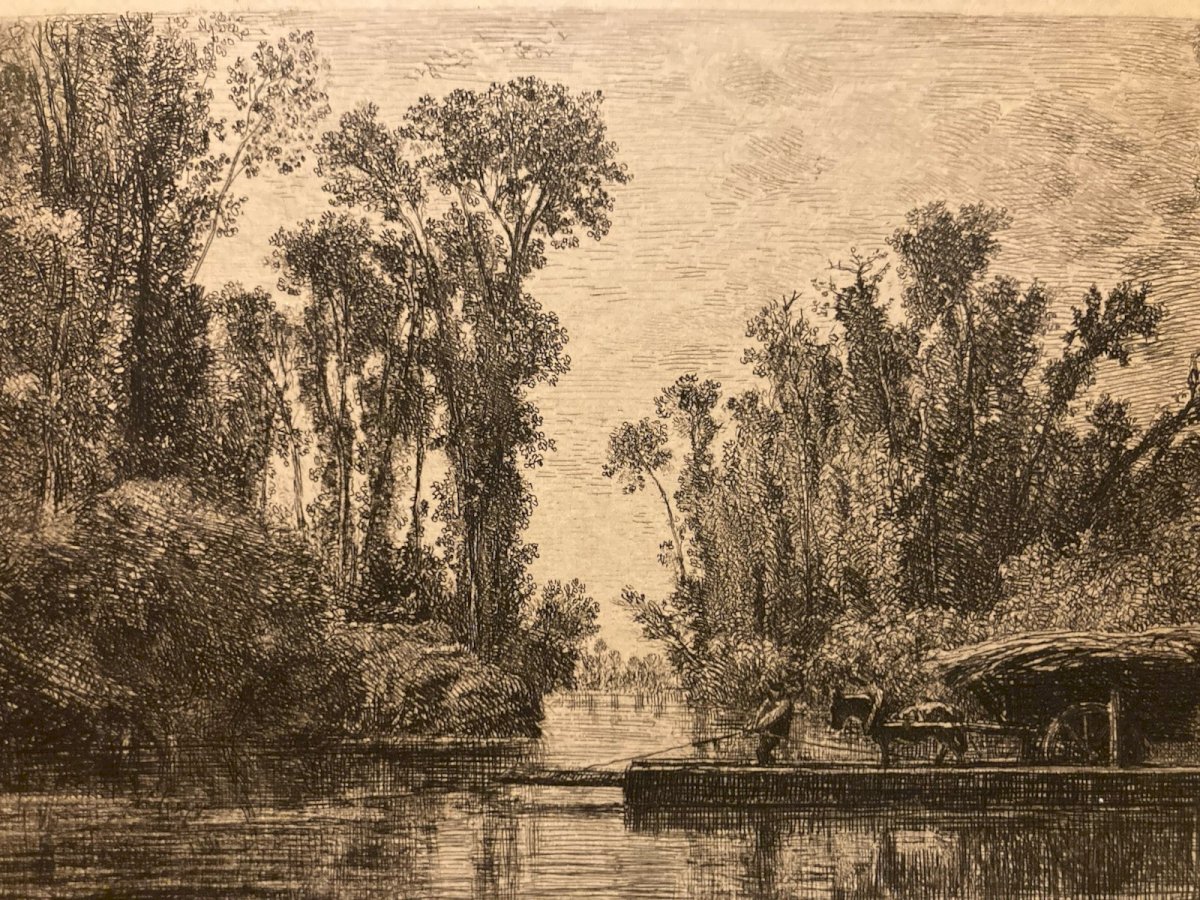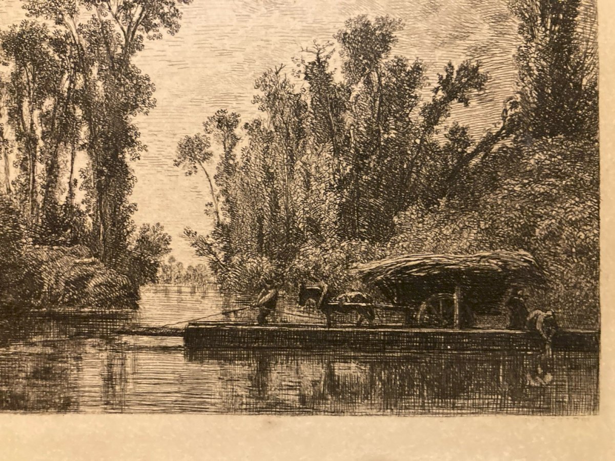 Gravure Eau Forte Charles François DAUBIGNY Le Bac De Bezons 1851 XIXe Art