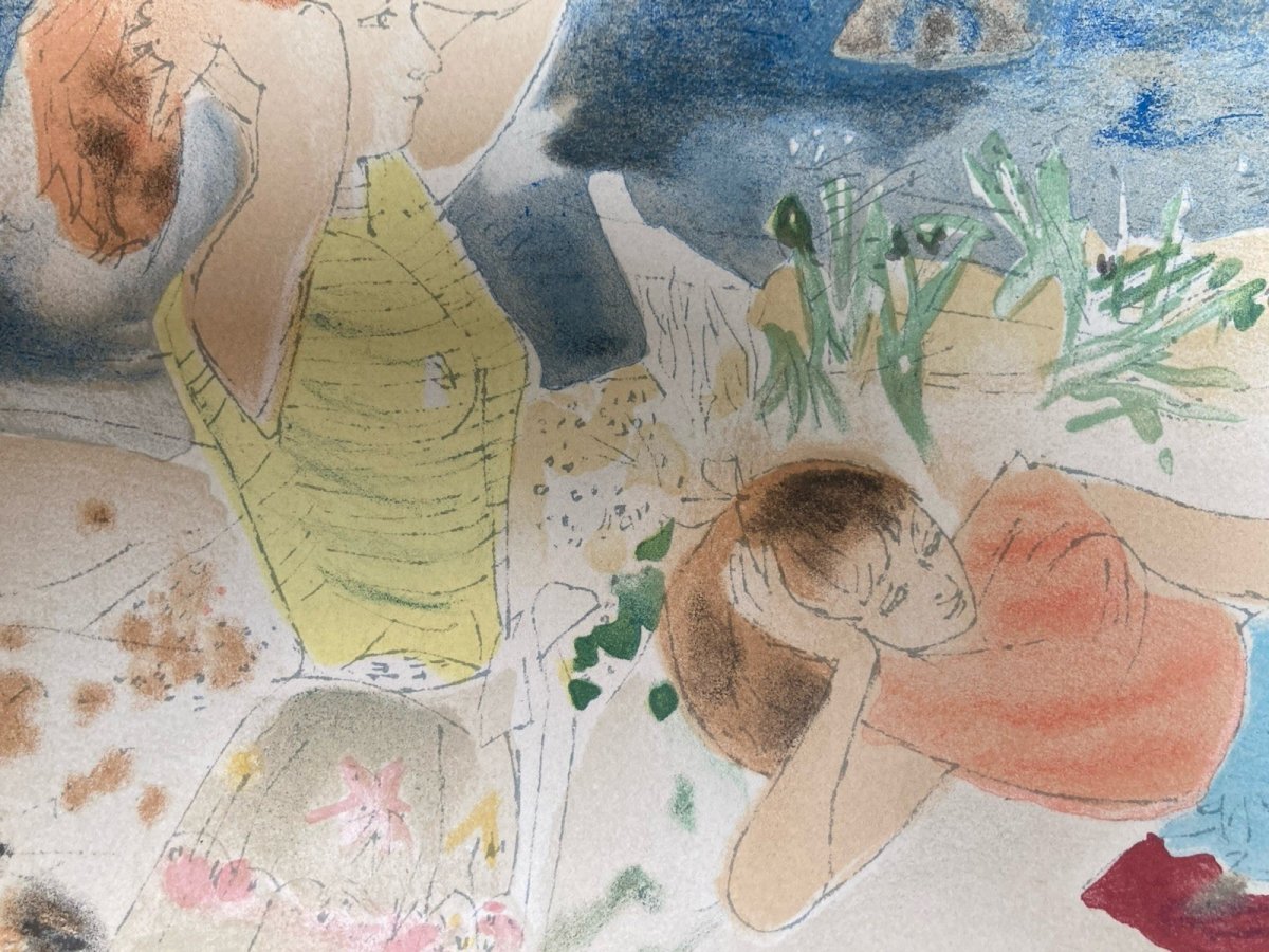 Bon état général, Voir photo À identifier Type:Lithographie Pays d'origine:France Style:1940-1960 Genre:Art déco Thème:Scène de genre