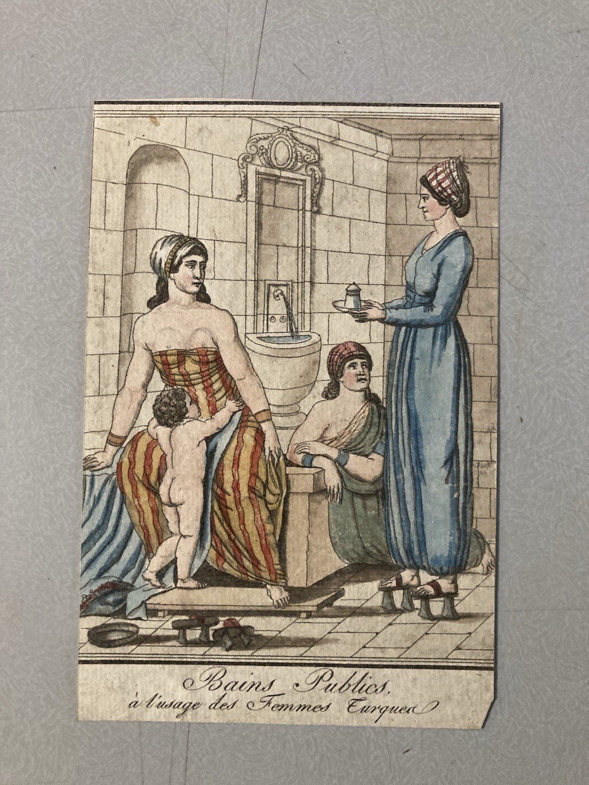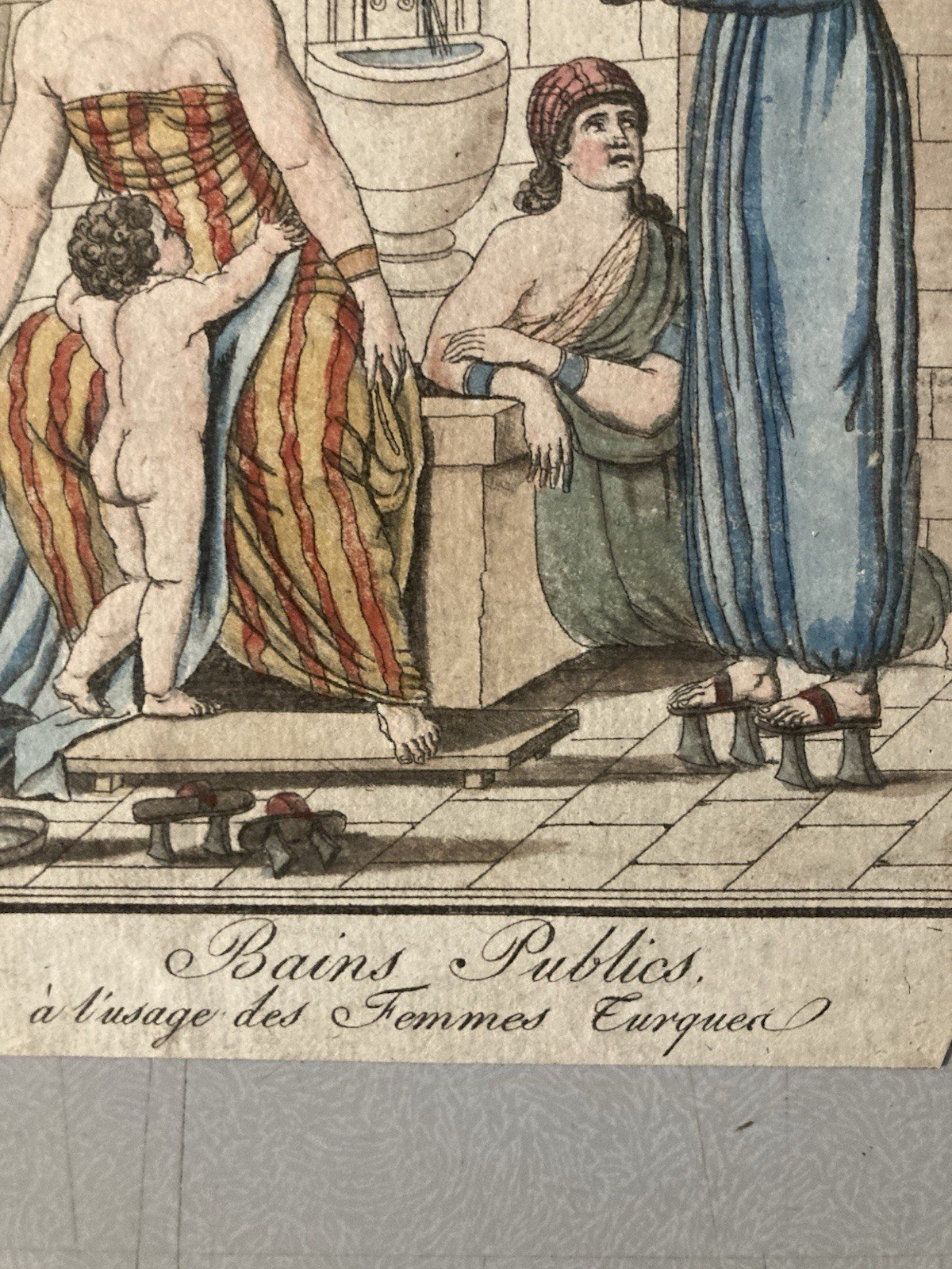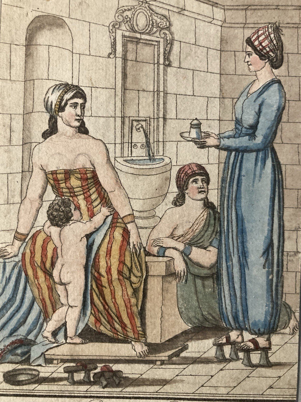 Gravure Portrait XVIIIe Grasset 1780 Femme Bain Turque Costume Monde Art