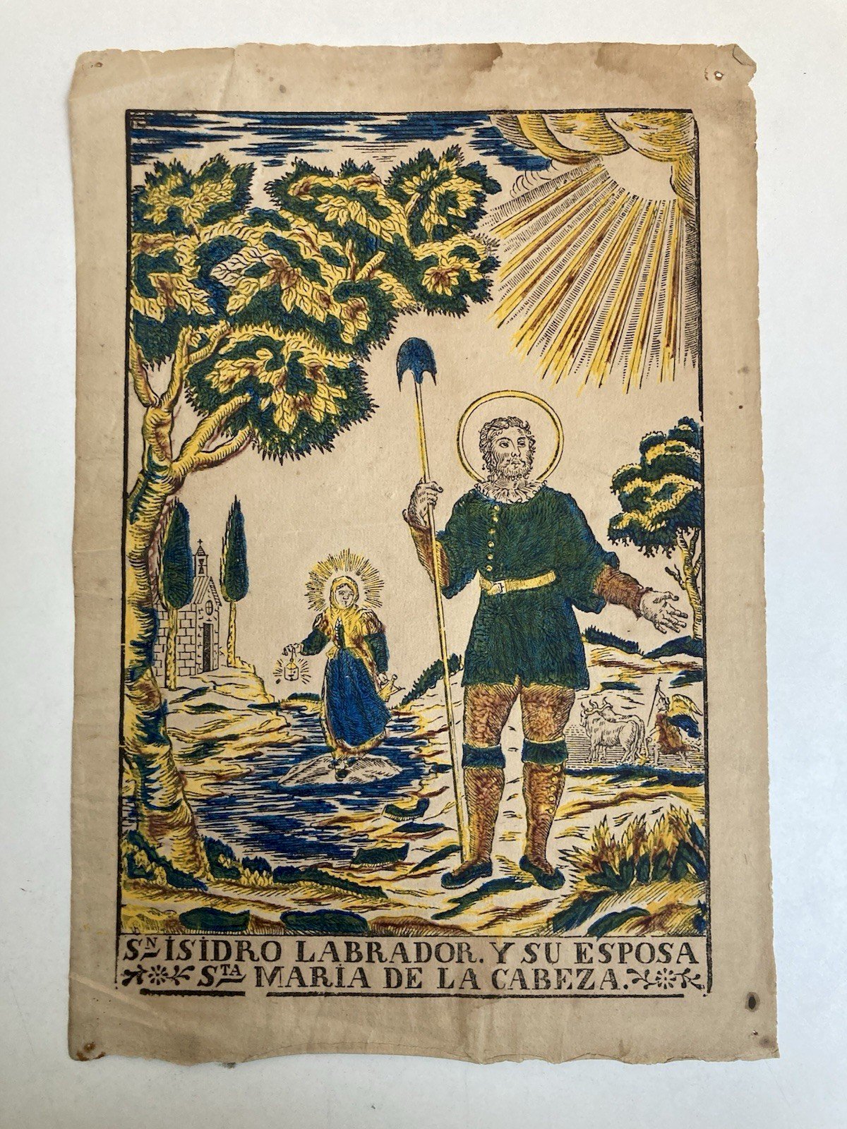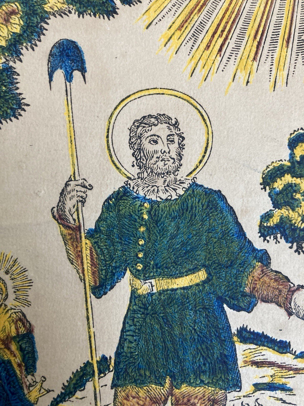 Gravure XIXe Bois Saint Isidore Le Laboureur Religion Jesus Christ Ancien Art
