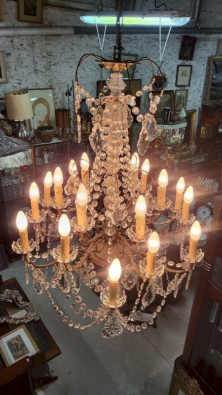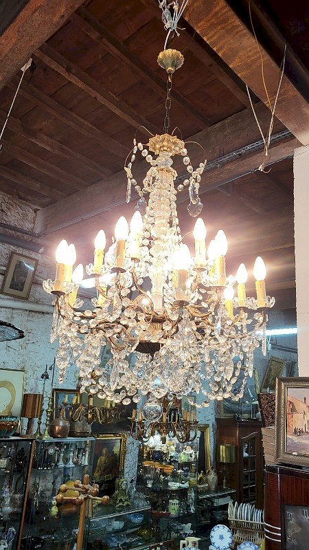 GROS LUSTRE A PAMPILLES 18 AMPOULES