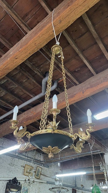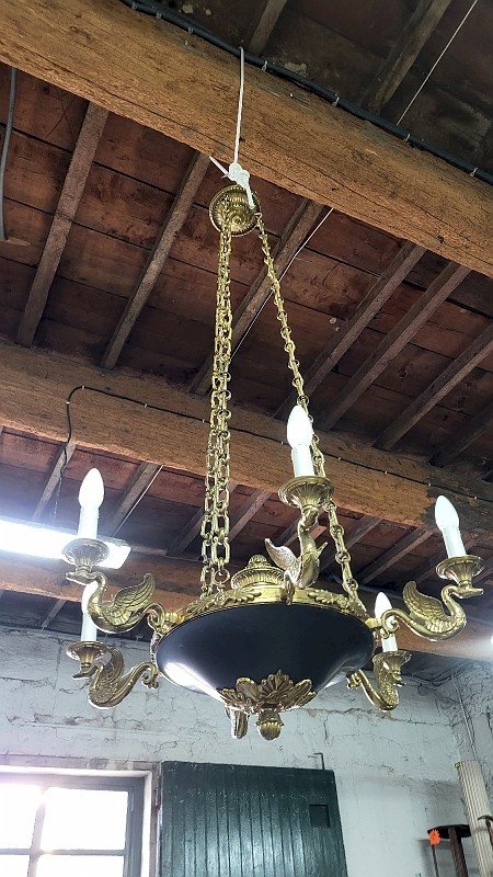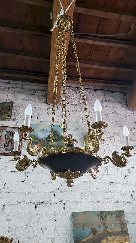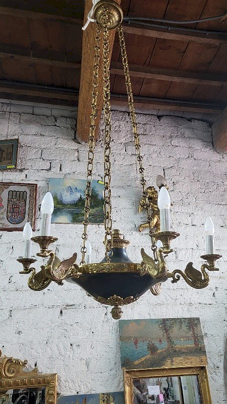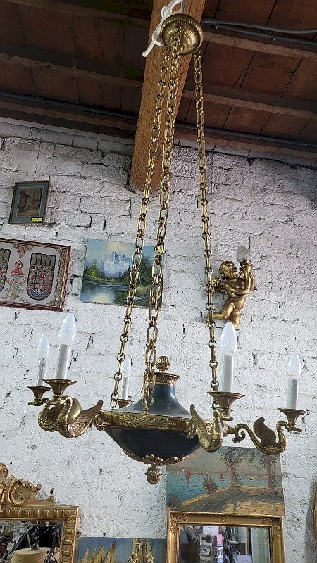 GROS LUSTRE EN BRONZE STYLE EMPIRE 6 AMPOULES