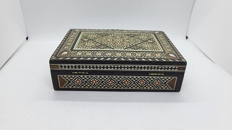 GROSSE BOITE EN BOIS MARQUETERIE DAMASQUINE N° 2