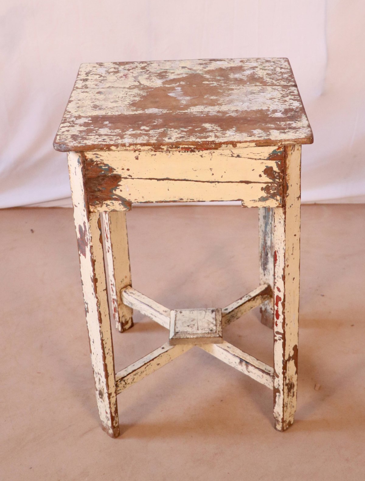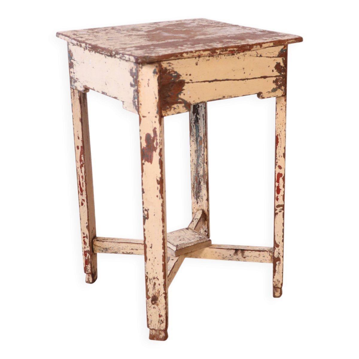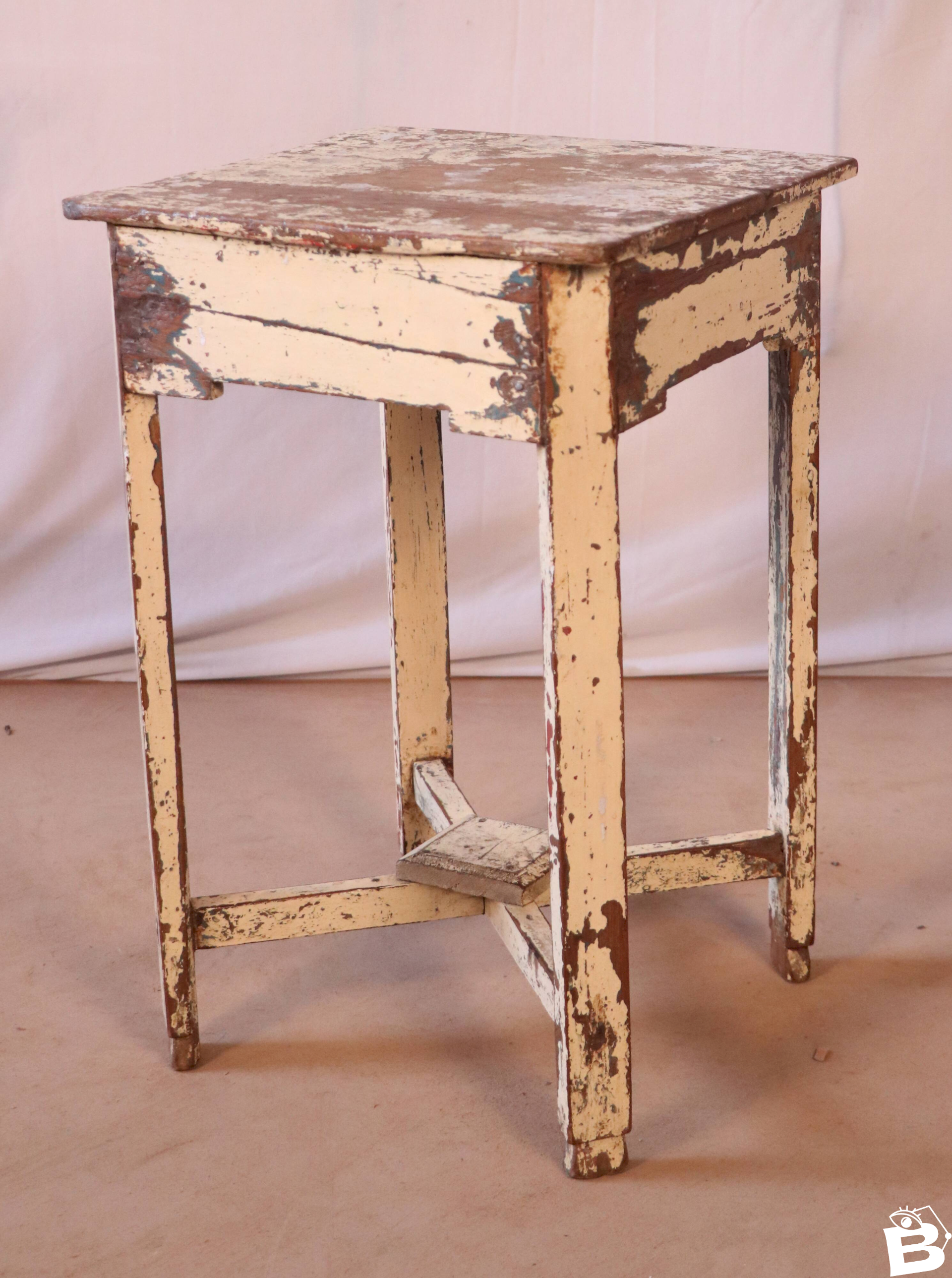 Guéridon en teck birman / belle patine écrue d'origine / 38 x 37 x 60 cm - 5 kg