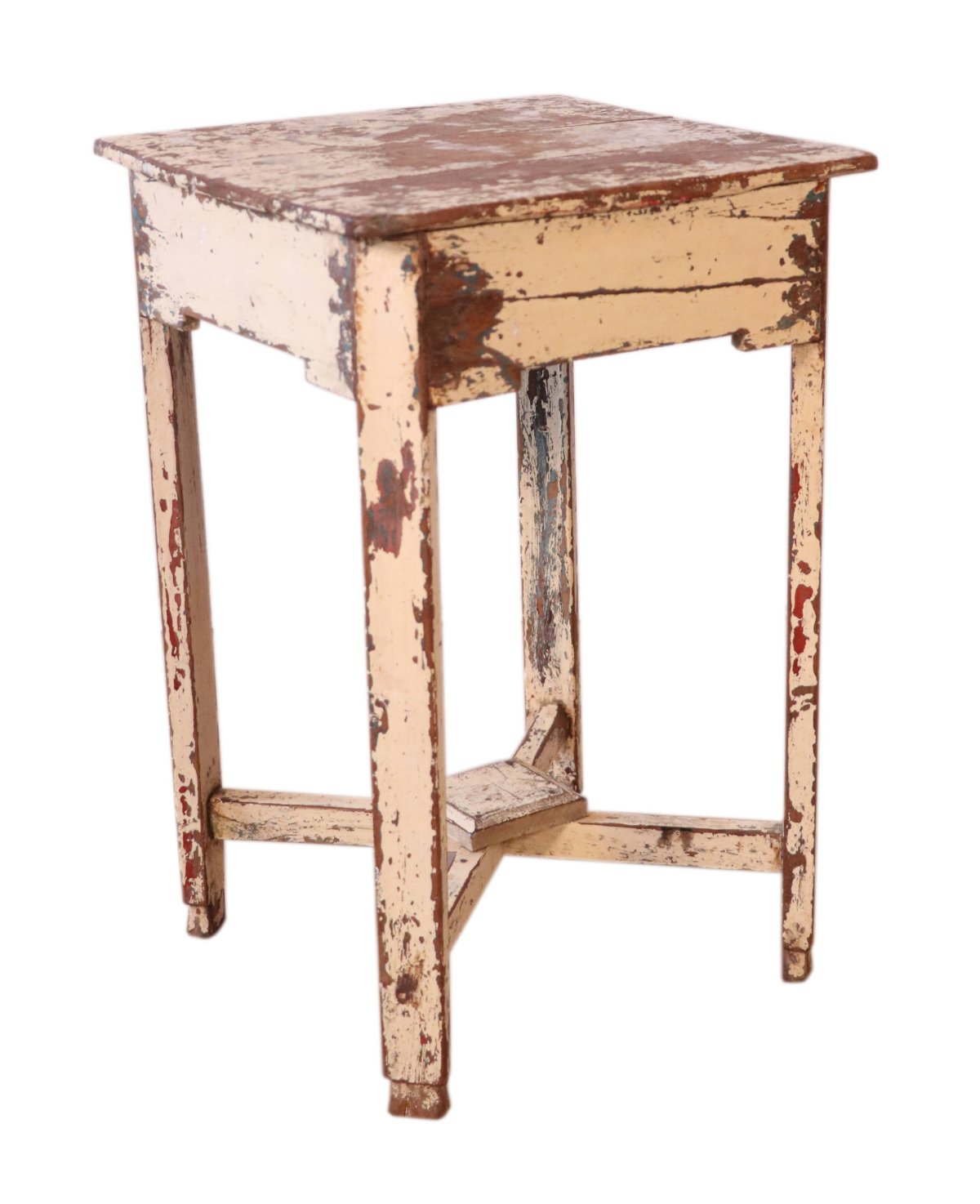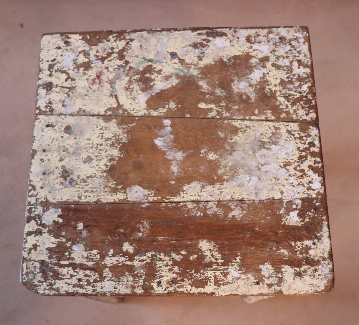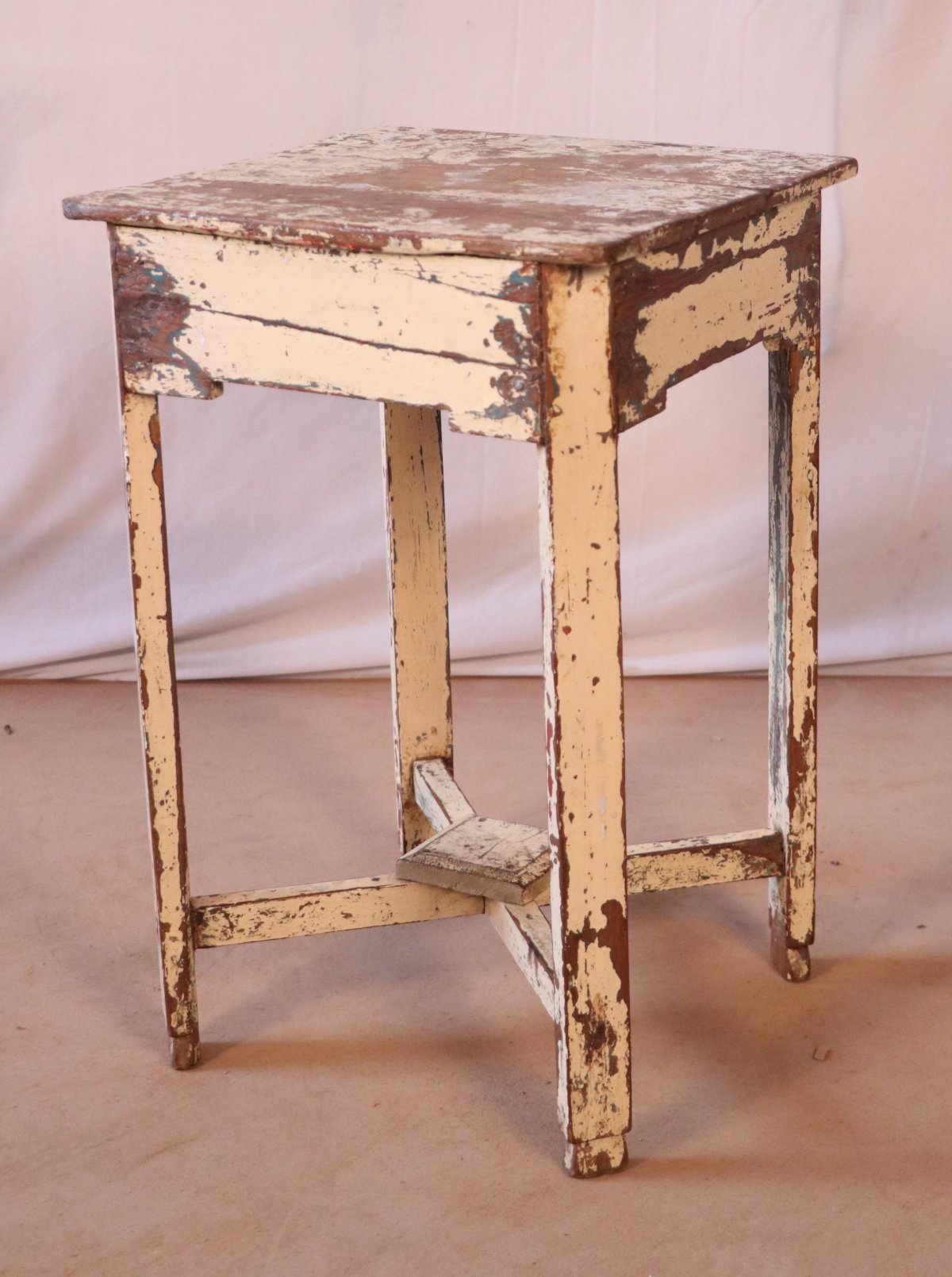 Guéridon en teck birman / belle patine écrue d'origine / 38 x 37 x 60 cm - 5 kg