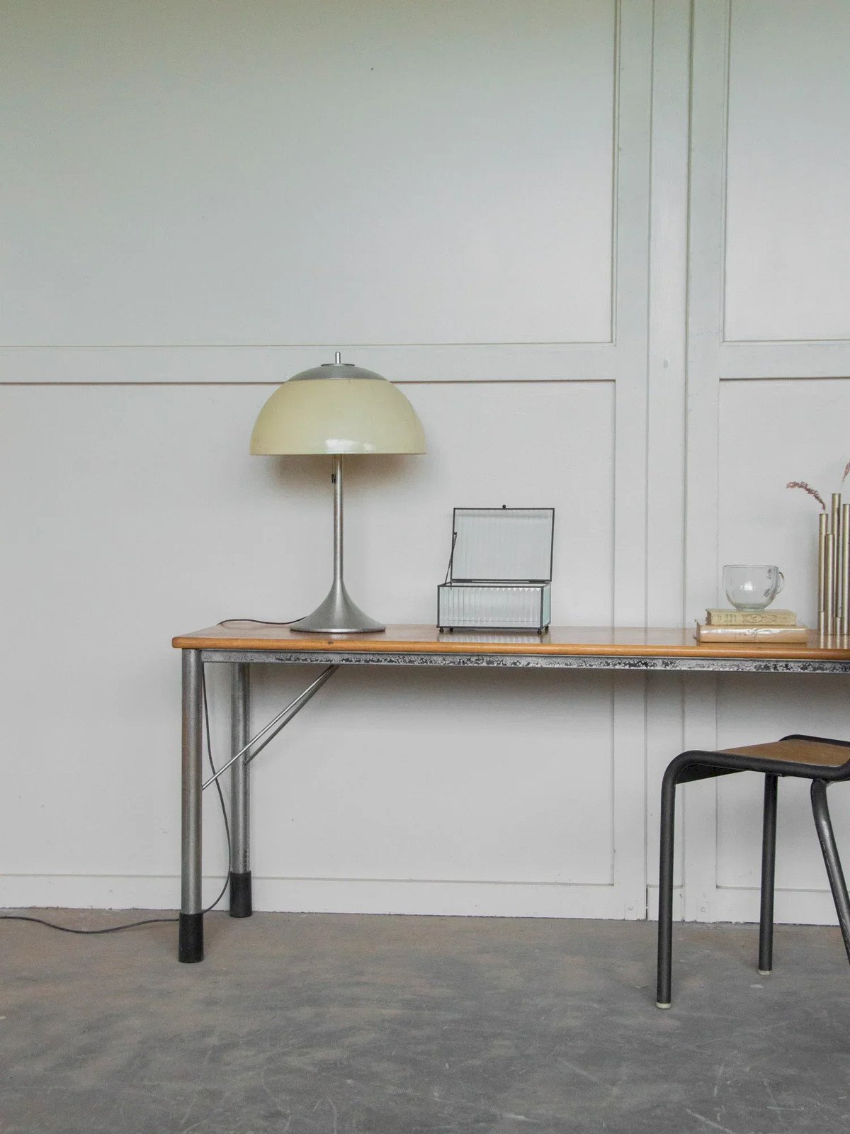 Découvrez cette ancienne table d'école au charme pittoresque, idéale pour ajouter une touche vintage à votre intérieur. Ses pieds en métal réglables vous permettent d'ajuster la hauteur de 59 à 67 cm, offrant ainsi une flexibilité pour un usage comme bureau ou table d'appoint. Le plateau en aggloméré plaqué chêne présente un léger défaut sur un coin, visible sur les photos. Pratique, la table est démontable mais non pliable, alliant esthétique et fonctionnalité. Peut servir de table suivant vos événements ! Longueur : 171 cm Largeur : 45,5 cm Hauteur : de 59 à 67 cm État:Occasion: Objet ayant été utilisé. Objet présentant quelques marques d'usure superficielle, ...Occasion: Objet ayant été utilisé. Objet présentant quelques marques d'usure superficielle, entièrement opérationnel et fonctionnant correctement. Il peut s'agir d'un modèle de démonstration ou d'un objet retourné en magasin après une courte période d'utilisation. les éventuelles imperfections. Marque:Debongout Type:Produit chiné Matériau:Bois, Métal Style:Contemporain Personnalisé:Tables d'appoint