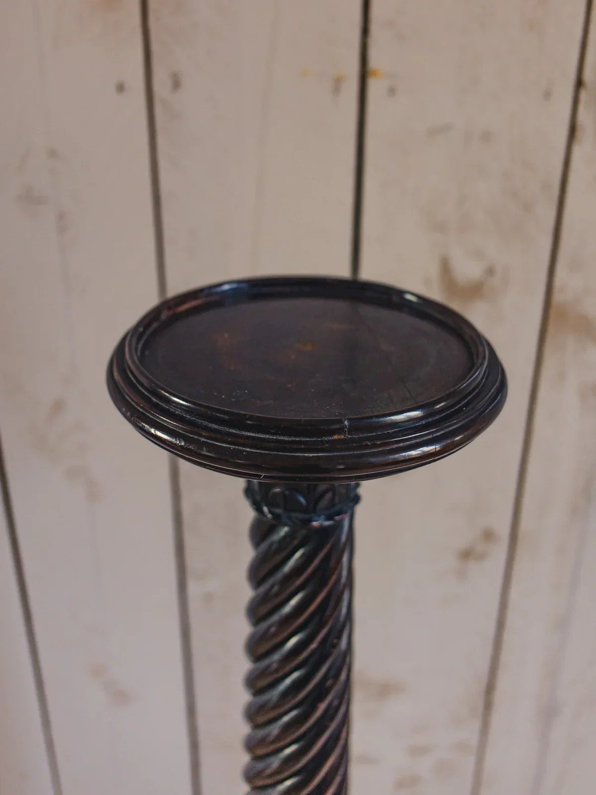 Invitez une colonne bicolore en bois foncé et bois noir au cœur de votre intérieur, dont le contraste élégant structure l'espace avec sobriété. Sa silhouette élancée accueille, objets et plantes tout en préservant une présence raffinée, idéale pour une entrée, un salon ou une chambre aux accents contemporains. Le mélange de bois apporte chaleur et caractère, créant une atmosphère intime et graphique. Légères traces du temps présentes. Hauteur : 130 cm Diamètre : 24 cm État:Occasion: Objet ayant été utilisé. Objet présentant quelques marques d'usure superficielle, ...Occasion: Objet ayant été utilisé. Objet présentant quelques marques d'usure superficielle, entièrement opérationnel et fonctionnant correctement. Il peut s'agir d'un modèle de démonstration ou d'un objet retourné en magasin après une courte période d'utilisation. les éventuelles imperfections. Marque:Debongout Type:Produit chiné Matériau:Bois Style:Contemporain Personnalisé:Tables d'appoint