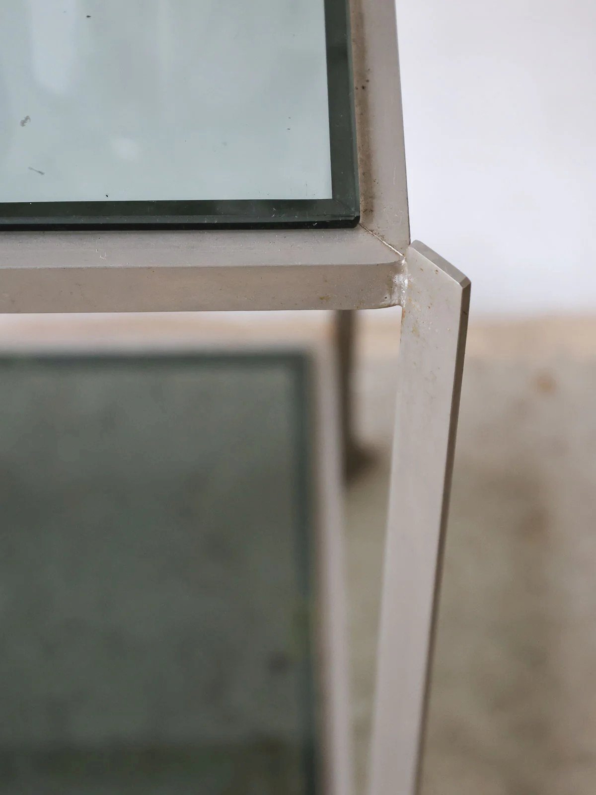 Ajoutez une touche contemporaine avec cette sellette en verre fumé et métal argenté, dont la silhouette élancée s'insère aisément dans les espaces restreints. Le plateau principal et le petit plateau supérieur composent une présentation étagée idéale pour une lampe, une plante ou des objets précieux, tandis que les jolis pieds en métal apportent légèreté et stabilité. Compacte mais généreuse en usages, elle invite une ambiance raffinée et discrète dans le salon ou l'entrée. Longueur : 35 cm Largeur : 35 cm Hauteur : 61 cm Hauteur petit plateau : 14 cm État:Occasion: Objet ayant été utilisé. Objet présentant quelques marques d'usure superficielle, ...Occasion: Objet ayant été utilisé. Objet présentant quelques marques d'usure superficielle, entièrement opérationnel et fonctionnant correctement. Il peut s'agir d'un modèle de démonstration ou d'un objet retourné en magasin après une courte période d'utilisation. les éventuelles imperfections. Marque:Debongout Type:Produit chiné Matériau:Verre, Métal Style:Contemporain Personnalisé:Tables d'appoint
