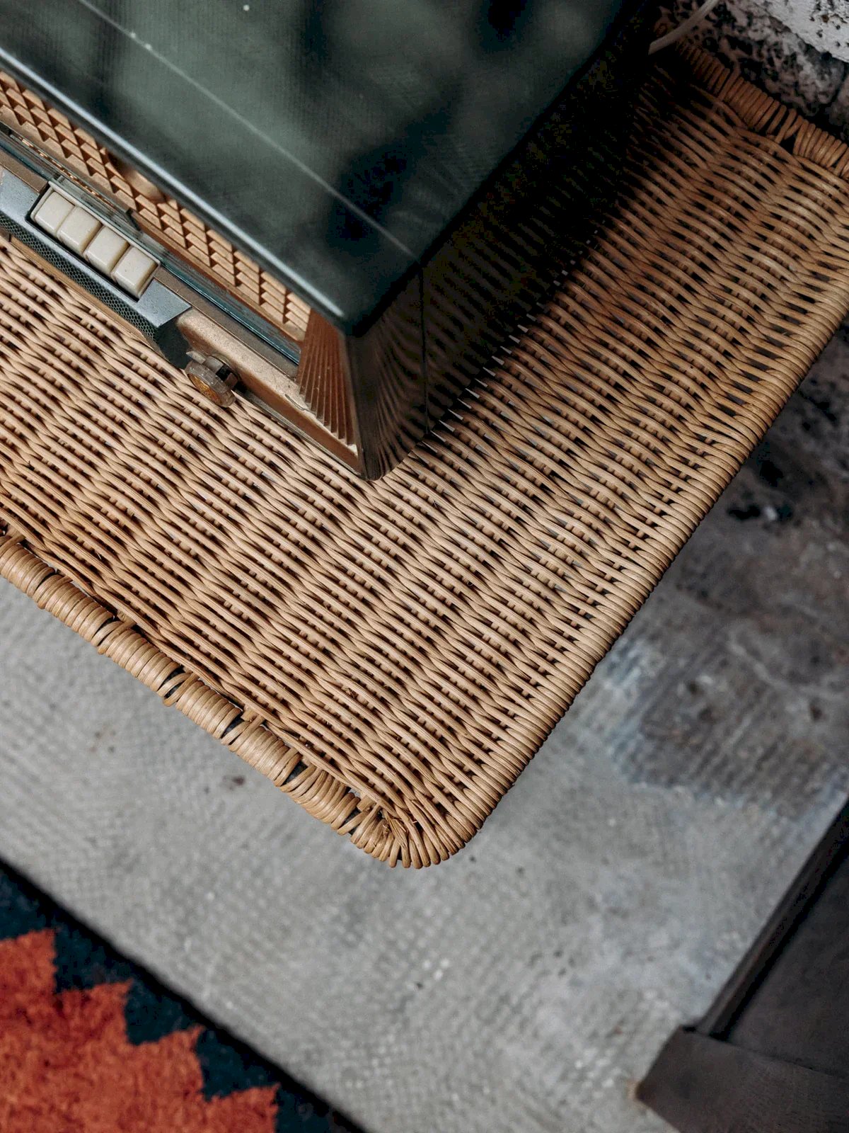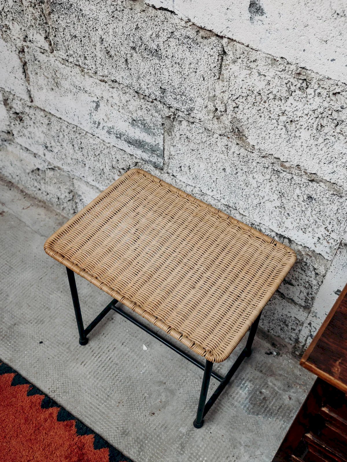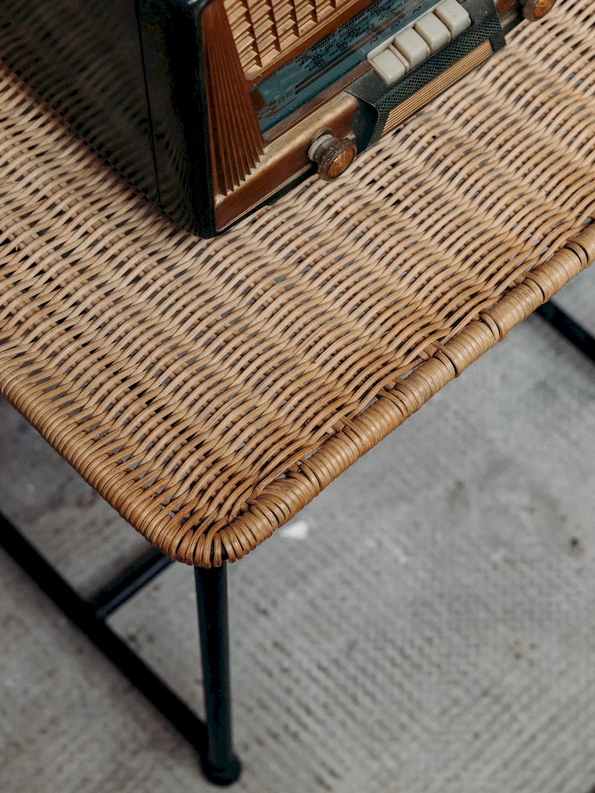 Découvrez cette élégante sellette, parfaite comme table d’appoint pour sublimer votre intérieur. Son plateau en osier apporte une touche naturelle et légère, tandis que ses pieds fins en métal noir et ses barres centrales assurent stabilité et finesse. Très fine, elle se glisse facilement dans tous les espaces, même les plus réduits. Idéale pour poser une plante, une lampe ou vos objets déco favoris. Une pièce délicate et fonctionnelle au style aérien. Longueur : 50 cm Hauteur : 47 cm Profondeur : 36 cm État:Occasion: Objet ayant été utilisé. Objet présentant quelques marques d'usure superficielle, ...Occasion: Objet ayant été utilisé. Objet présentant quelques marques d'usure superficielle, entièrement opérationnel et fonctionnant correctement. Il peut s'agir d'un modèle de démonstration ou d'un objet retourné en magasin après une courte période d'utilisation. les éventuelles imperfections. Marque:Debongout Type:Produit chiné Matériau:Osier, Métal Personnalisé:Tables d'appoint Style:Contemporain