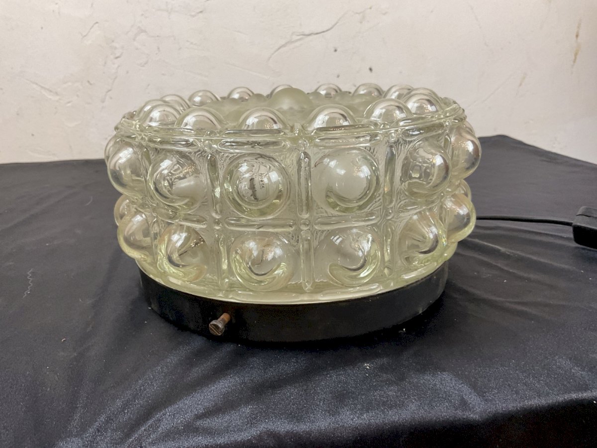 Helena Tynell Plafonnier Applique  Verre Bubble  Glashütte Limburg années 60 Diamètre : 21 cm Hauteur : 11 cm Type:Applique Période:Design du XXème Sous-type:Intérieure Matière:Verre Type d'éclairage:Standard