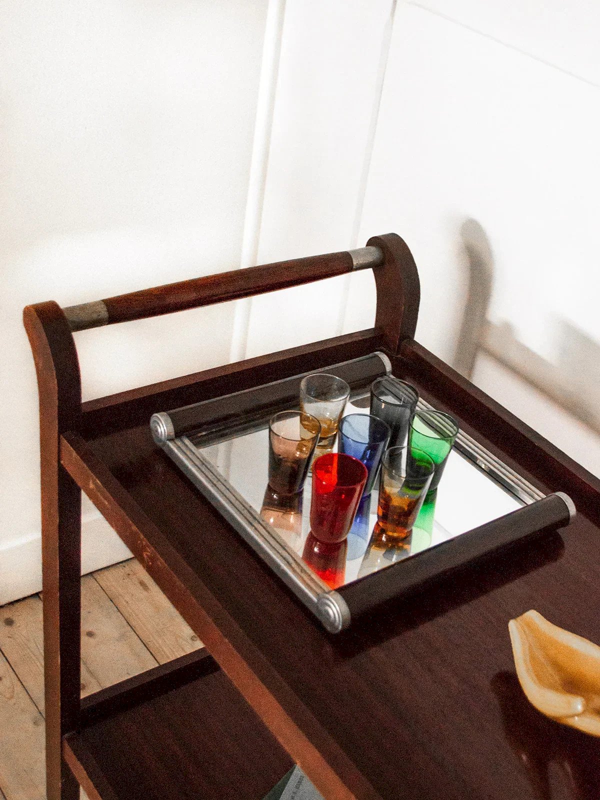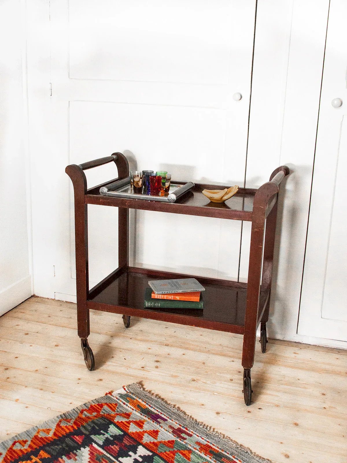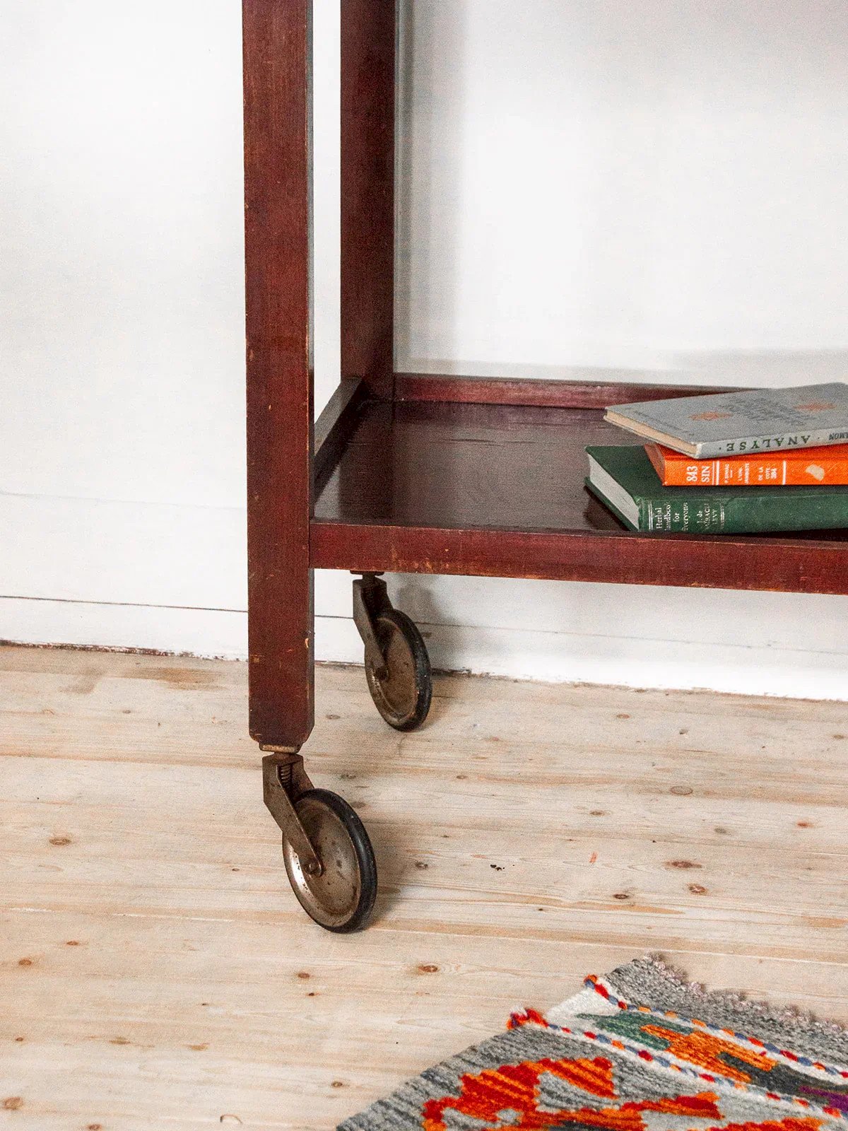 Découvrez notre desserte en bois à 2 étages, alliant style et fonctionnalité. Ses roues facilitent le déplacement tout en ajoutant une touche vintage à votre intérieur. Parfaite pour la cuisine ou le salon, elle offre un espace de rangement pratique pour vos plats, boissons ou livres. Apportez une note d'élégance à votre décoration tout en profitant d'une solution de rangement astucieuse. Longueur : 75 cm Largeur : 43 cm Hauteur : 78 cm Petite histoire de la desserte La desserte, aussi appelée table servante, voit le jour au XVIIème siècle. À l’époque, elle est utilisée pour servir et desservir les plats et la vaisselle aux cours des repas. Munie de roulettes, elle se transfère d’un endroit à l’autre sans effort et permet de débarrasser la table plus rapidement en réduisant le nombre de trajets entre la salle à manger et la cuisine. C’est par sa grande utilité que la desserte est devenue un élément important du mobilier, servant aussi à servir le thé ou le petit-déjeuner. Cette petite table d’appoint mobile a su trouver au fil des siècles une place de choix dans notre intérieur. État:Occasion: Objet ayant été utilisé. Objet présentant quelques marques d'usure superficielle, ...Occasion: Objet ayant été utilisé. Objet présentant quelques marques d'usure superficielle, entièrement opérationnel et fonctionnant correctement. Il peut s'agir d'un modèle de démonstration ou d'un objet retourné en magasin après une courte période d'utilisation. les éventuelles imperfections. Marque:Debongout Type:Produit chiné Matériau:Bois Style:Campagne Personnalisé:Dessertes