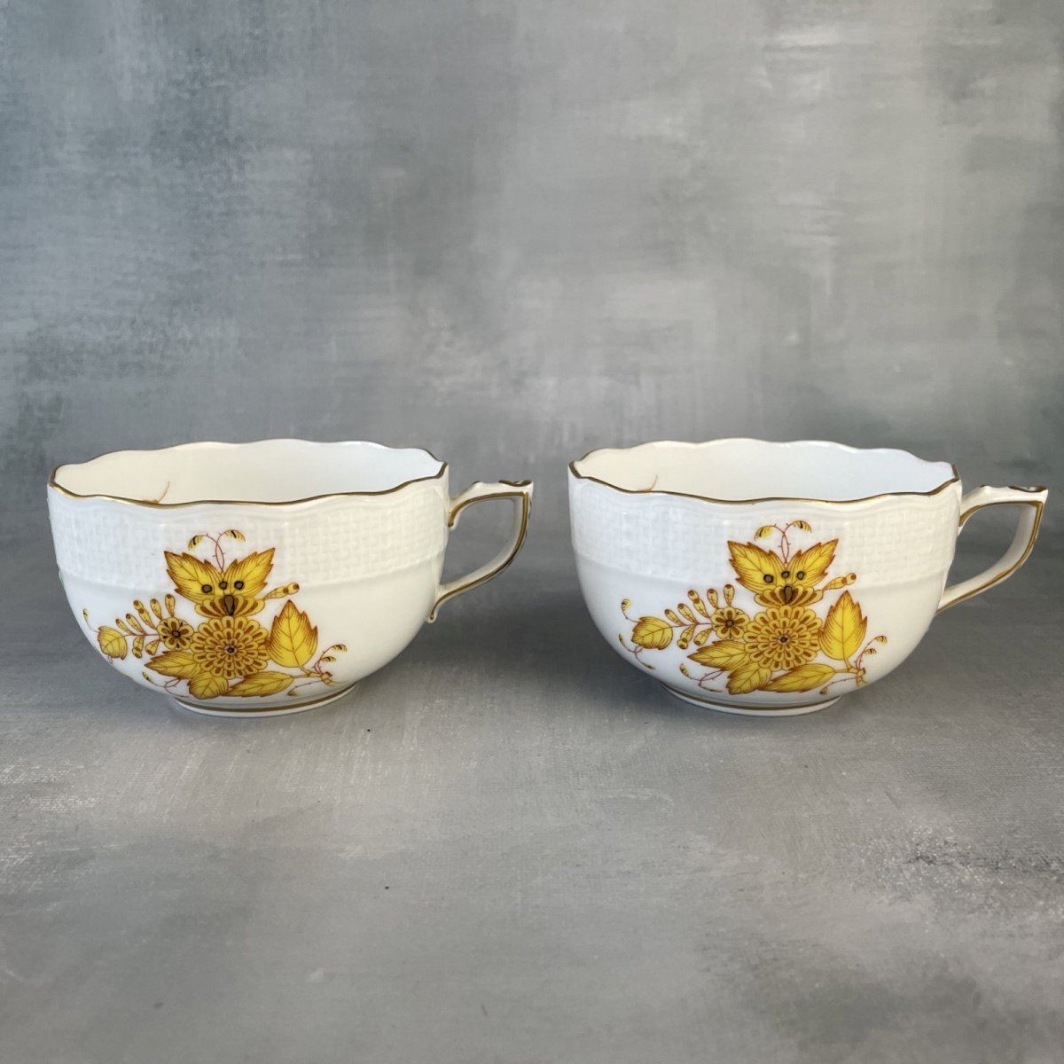 HEREND Hungary 2 tasses à thé décor Apponyi jaune porcelaine hongroise