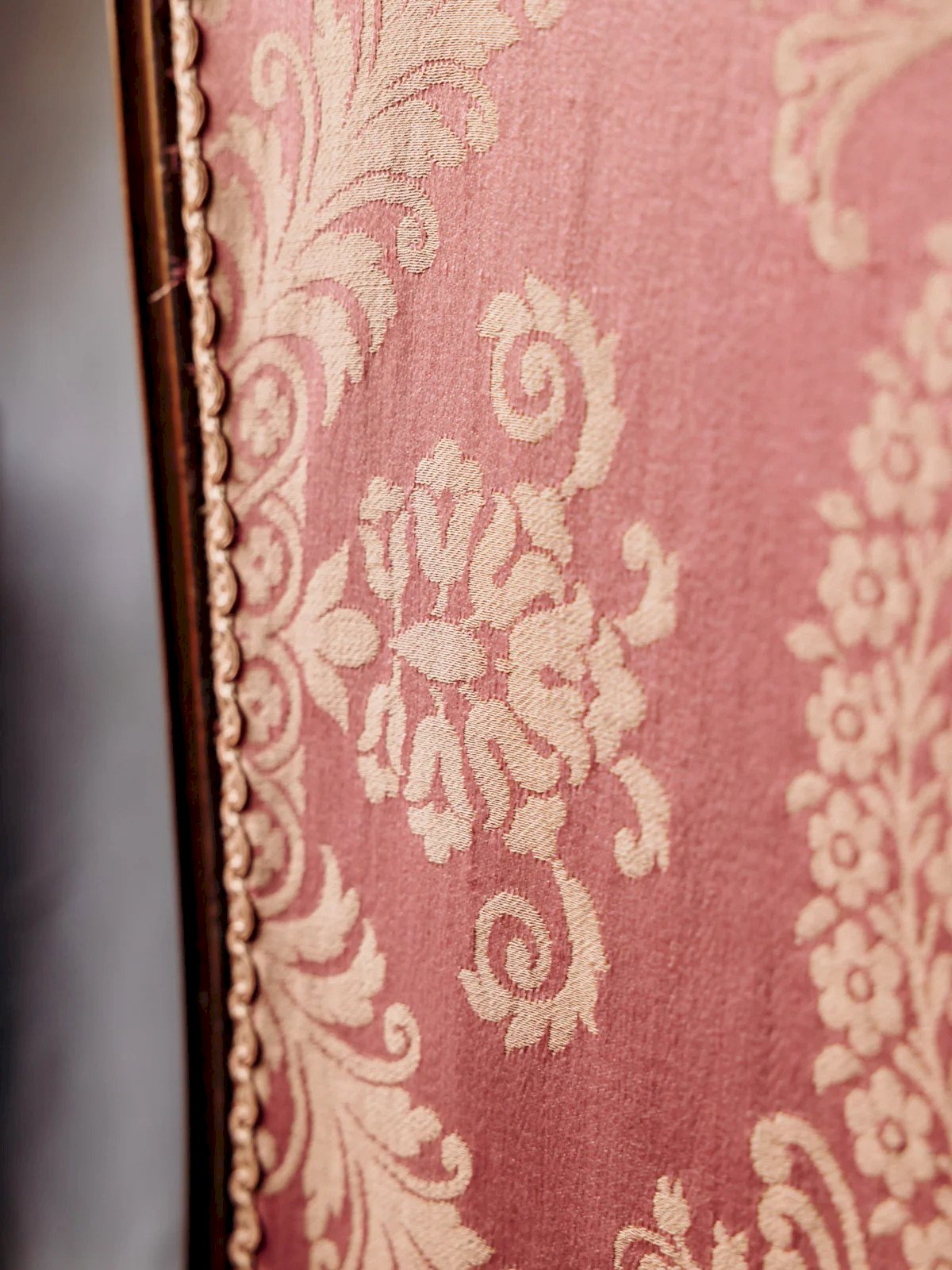 Invitez la douceur à votre intérieur avec ce pare-feu de cheminée en bois foncé habillé d'un tissu fleuri rose, qui marie protection et élégance. Les pieds écartés assurent une assise stable et soulignent sa silhouette bien proportionnée, idéale pour encadrer un feu dans un salon ou une chambre. Son style romantique mais sobre crée une ambiance chaleureuse et graphique, apportant une note décorative tout en remplissant sa fonction pratique. Légères usures à l'arrière. Longueur : 60 cm Largeur : 40 cm Hauteur : 98 cm État:Occasion: Objet ayant été utilisé. Objet présentant quelques marques d'usure superficielle, ...Occasion: Objet ayant été utilisé. Objet présentant quelques marques d'usure superficielle, entièrement opérationnel et fonctionnant correctement. Il peut s'agir d'un modèle de démonstration ou d'un objet retourné en magasin après une courte période d'utilisation. les éventuelles imperfections. Marque:Debongout Type:Produit chiné Matériau:Bois, Tissu Style:Campagne