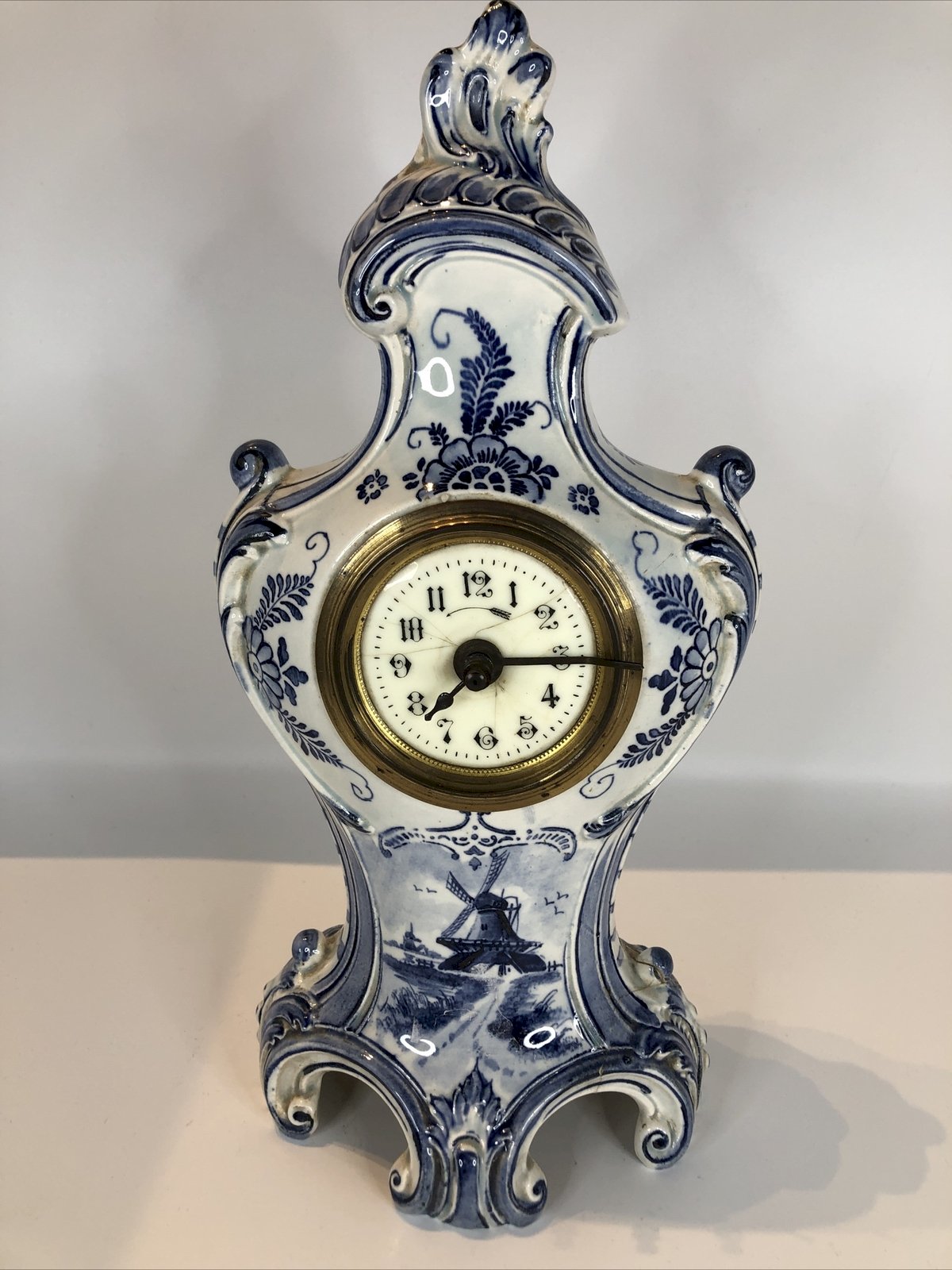 Horloge réveil Royal Bonn – Faïence décor Delft – Allemagne, XIXe/XXe