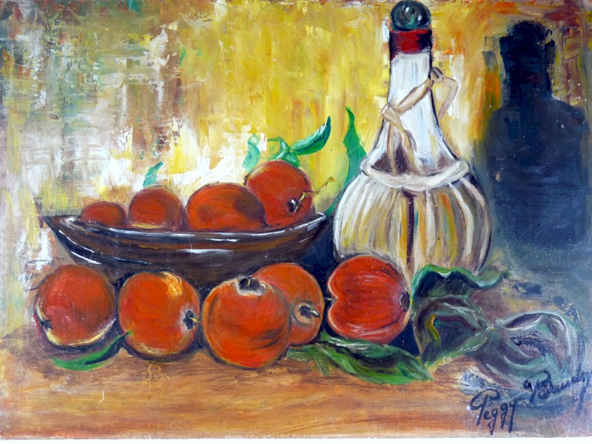 HSP NATURE MORTE AUX POMMES signée Peggy Baudry . Bon état général, très petits sauts de peinture aux coins, voir les photos . Dimensions : 33 x 24  cm . Type:Huile Style:1980 Genre:Expressionnisme Caractéristiques:Signé Thème:Nature morte Artiste:Peggy Baudry Pays d'origine:France métropolitaine