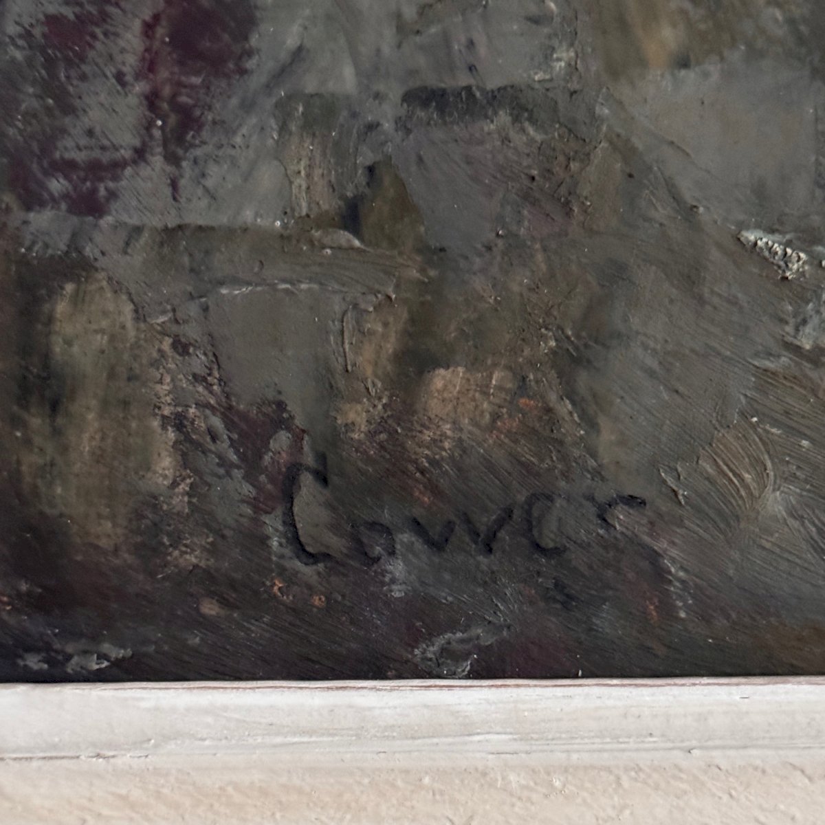 Huile sur carton représentant la houle par Cavver XXe cadre cérusé A5767 Cette huile réalisée par Cavver représente une mer déchainée. L'œuvre est en bon état général mais n'a pas été nettoyée, ni préparée. Nous signalons des petites traces d'usure sur le cadre. Nos photos vous permettent d’apprécier la qualité de l’œuvre. Pour l’état, merci de bien détailler les photos. N’hésitez pas à zoomer. Les photos font partie intégrante de la description. Dimensions  : - Cadre Hauteur : 72,8 cm Largeur : 90,5 cm Épaisseur : 6,5 cm - Œuvre Hauteur : 56,1 cm Largeur : 74,1 cm P :  1633760   Je reste à votre disposition pour toute question. Authenticité:Inconnu Poids:Inconnue Type:Huile Hauteur:72,8 cm Style:Non-spécifié Genre:Inconnu Longueur:cm Caractéristiques:Encadré, Signé Largeur:90,5 cm