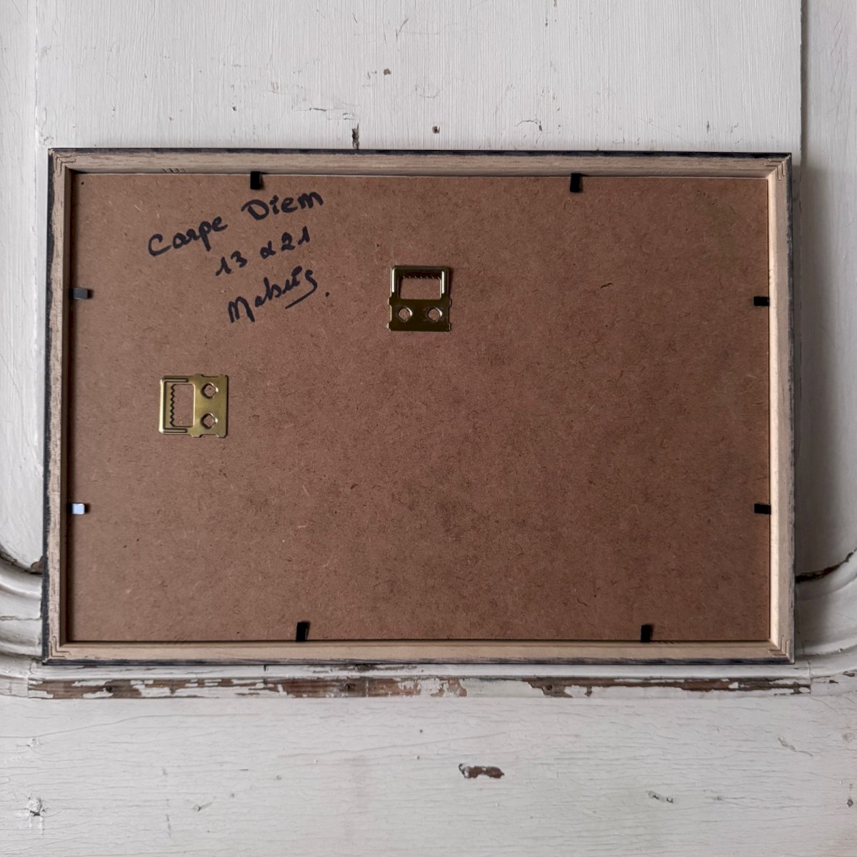 Huile sur papier par Mabris XXIe intitulée Carpe Diem A5738 Cette huile sur papier intitulée “Carpe Diem” est sous verre. L'œuvre est en bon état général, nous signalons que le papier est légèrement ondulé et de fines rayures sur le cadre. Mabris est une artiste primée basée en France dont les peintures ont été exposées à l’échelle nationale, ainsi qu’en Chine, en Belgique et au Japon. Son âme de coloriste l’a conduite tout naturellement à associer l’énergie de la couleur à la puissance du trait, avec un intérêt plus particulier pour le dynamisme des formes et l’harmonie du mouvement. Nos photos vous permettent d’apprécier la qualité de l’œuvre. Pour l’état, merci de bien détailler les photos. N’hésitez pas à zoomer. Les photos font partie intégrante de la description. Dimensions : - Cadre Hauteur : 22 cm Largeur : 32 cm Épaisseur : 1,3 cm - Œuvre Hauteur : 13 cm Largeur : 20,5 cm P : 1602785 Je reste à votre disposition pour toute question. Authenticité:Inconnu Poids:Inconnue Pays de fabrication:France Hauteur:22 cm Longueur:cm Caractéristiques:Encadré, Signé Largeur:32 cm Artiste:Mabris Type:Huile Style:Non-spécifié Genre:Inconnu Thème:Abstrait
