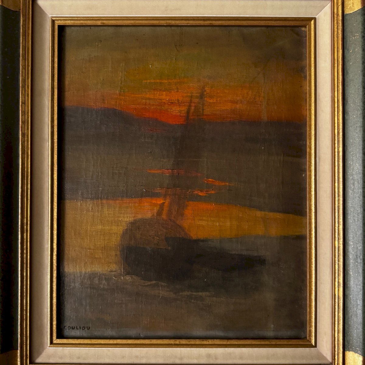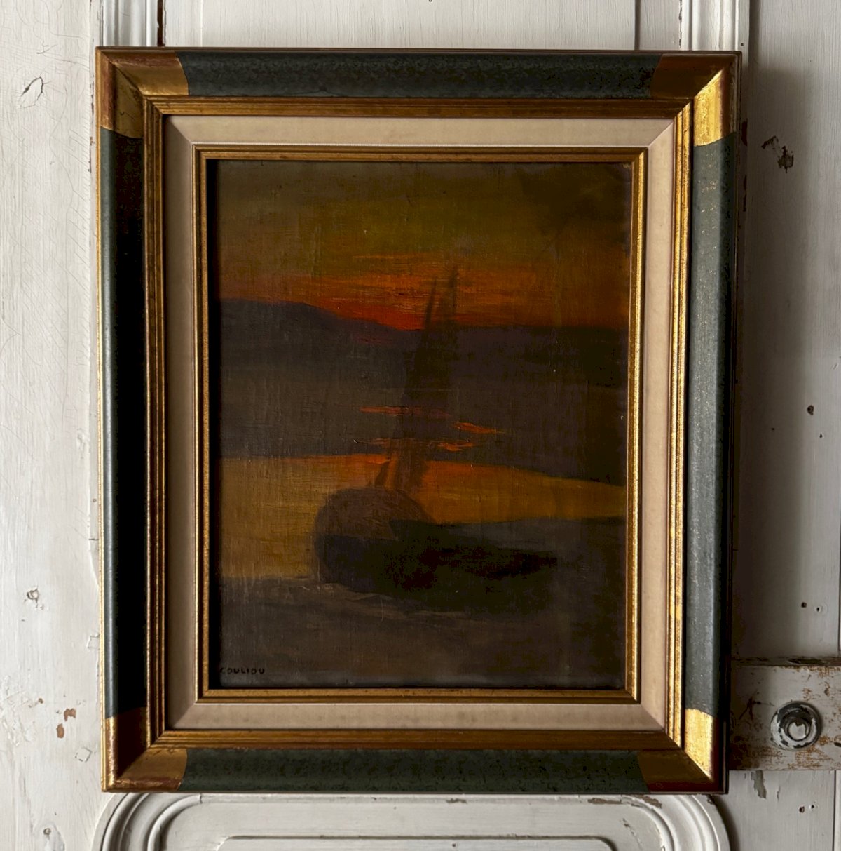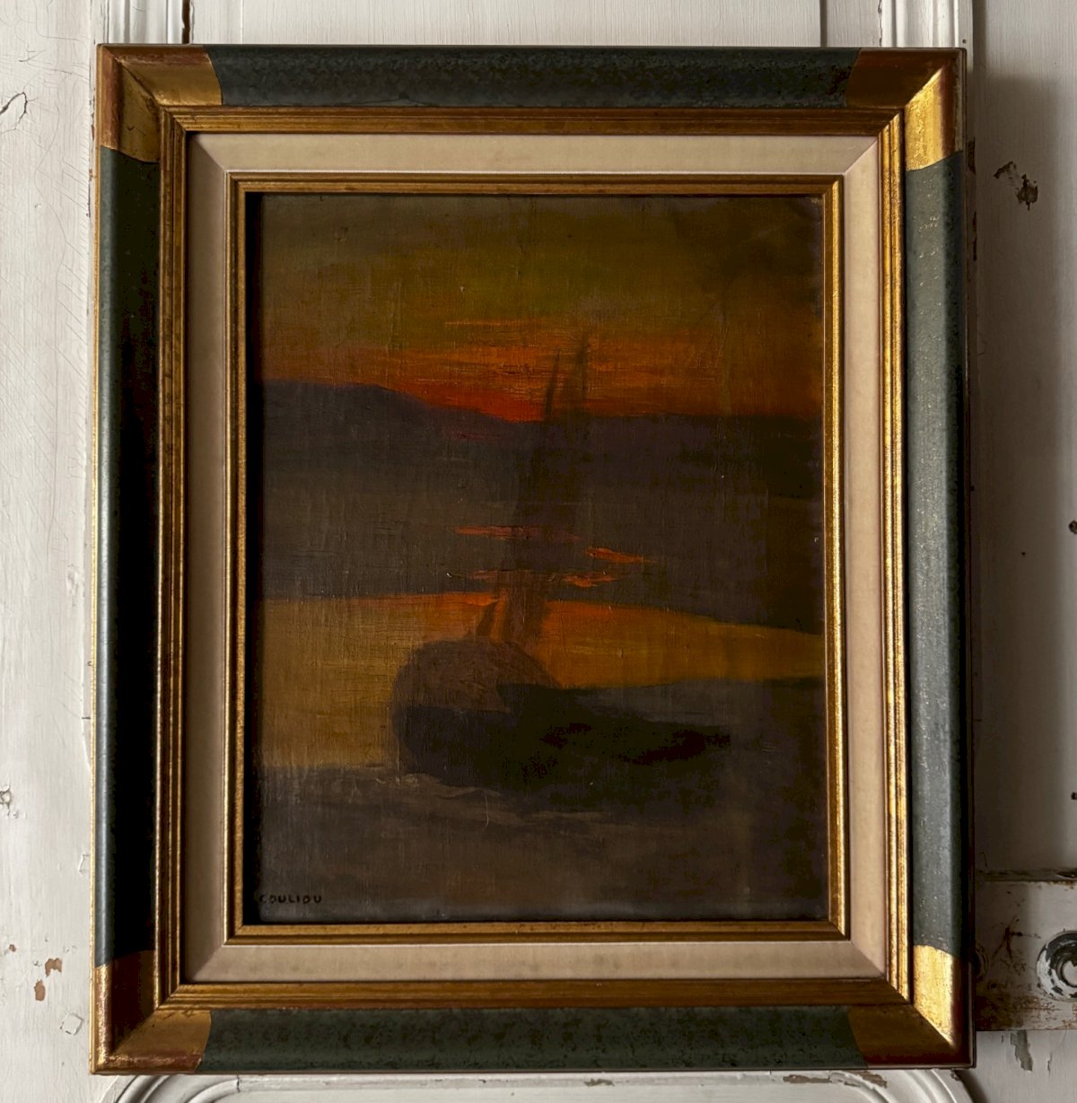 Huile sur toile bateau au soleil couchant par Jean-Yves Couliou XXe A5745