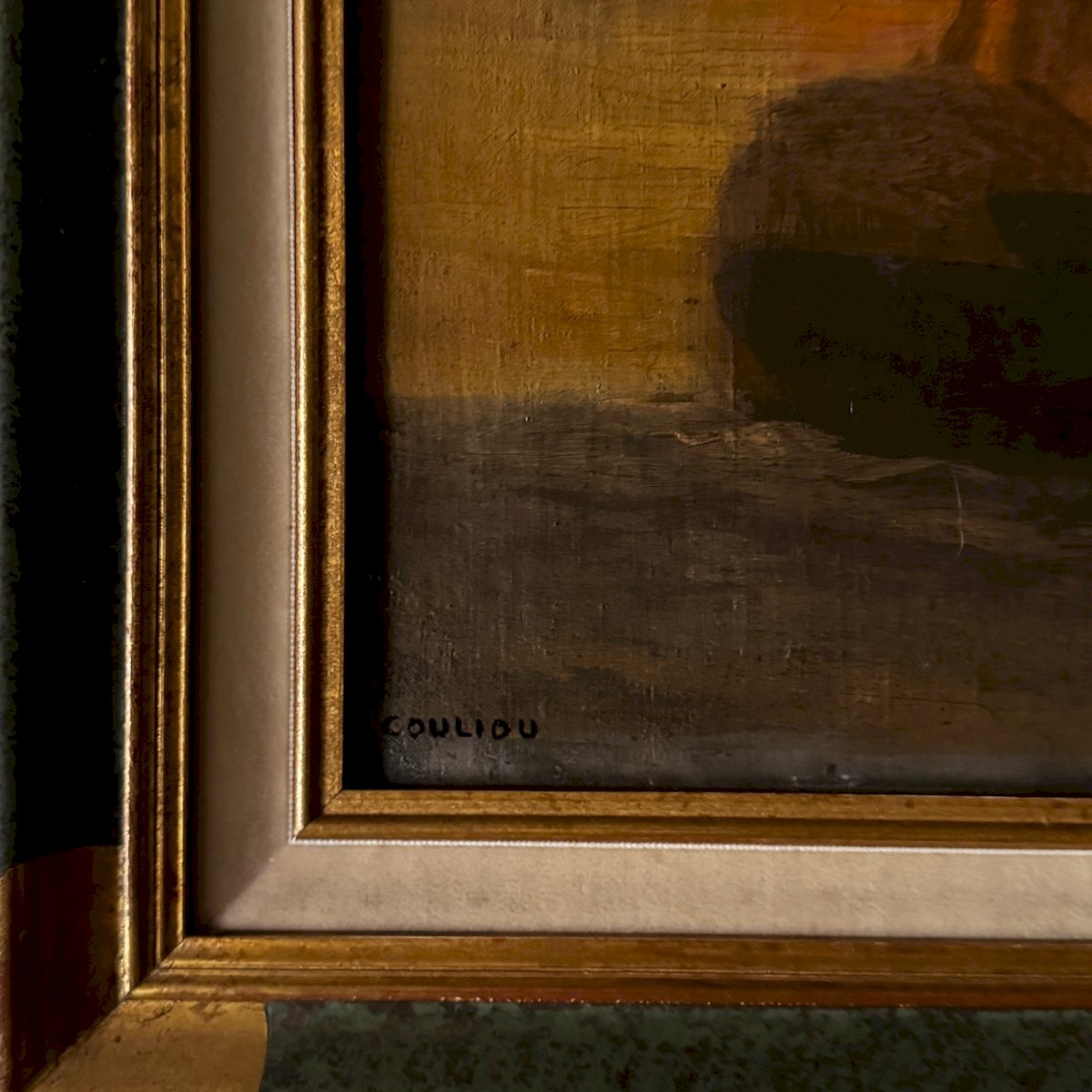 Huile sur toile bateau au soleil couchant par Jean-Yves Couliou XXe A5745 Cette huile sur toile a été réalisée par Jean-Yves Couliou, elle représente un bateau au soleil couchant. Nous signalons des petites taches sur la marie-louise, des craquelures classiques sur la peinture, une légère ondulation de la toile. Après une période naïve,  Jean-Yves Couliou (1916-1995)  se tourne vers l’abstraction pour revenir à une peinture figurative. Ses œuvres sont présentes dans de nombreux musées : Musée d’Art Moderne de la ville de Paris, Musée de Belgrade, Musée de Glasgow, Amsterdam...   Nos photos vous permettent d’apprécier la qualité de l’œuvre. Pour l’état, merci de bien détailler les photos. N’hésitez pas à zoomer. Les photos font partie intégrante de la description. Dimensions  : - Cadre Hauteur : 55,9 cm Largeur : 47,9 cm - Œuvre Hauteur : 39,7 cm Largeur : 31,2 cm P :  1633832   Je reste à votre disposition pour toute question. Authenticité:Inconnu Poids:Inconnue Type:Huile Hauteur:55,9 cm Style:Non-spécifié Genre:Inconnu Longueur:cm Caractéristiques:Encadré, Signé, Sur toile Largeur:47,9 cm Thème:Paysage marin, Bateau