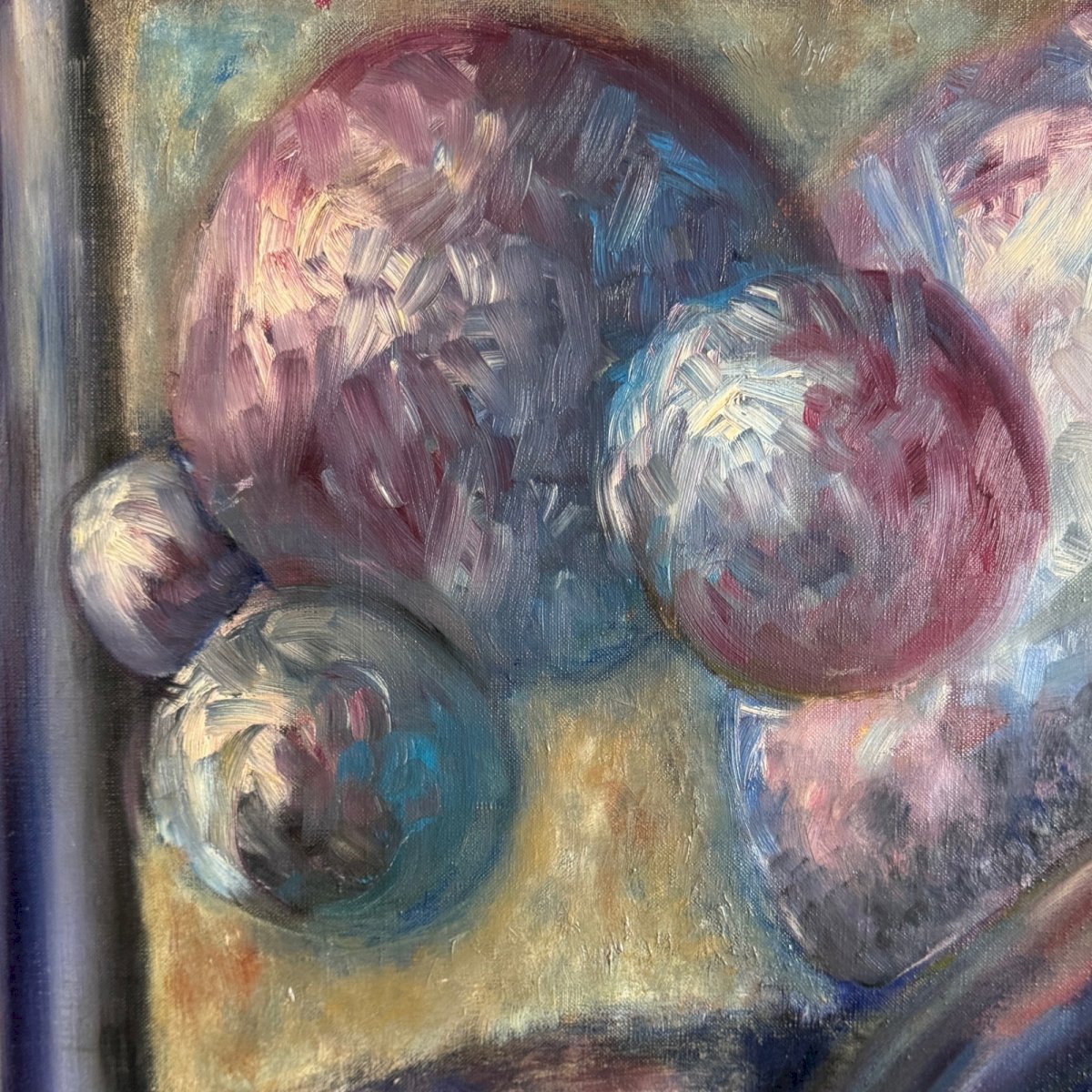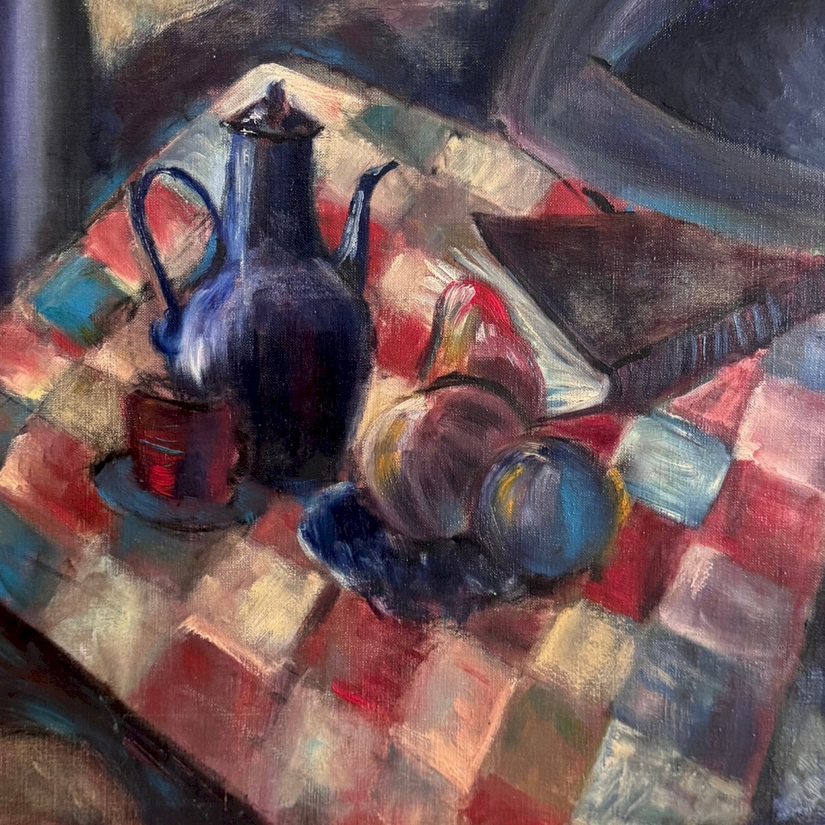 Huile sur toile par Véronique Maude Fini couple attablé 1960 A5752 Cette huile sur toile représente un couple attablé devant une nature morte aux fruits, l'œuvre est  empreinte de surréalisme . Le tout est très coloré, joliment amené. L'œuvre est en bon état général, nous signalons une petite déchirure au-dessus de la tête de la femme.  Nos photos vous permettent d’apprécier la qualité de l’œuvre. Pour l’état, merci de bien détailler les photos. N’hésitez pas à zoomer. Les photos font partie intégrante de la description. Dimensions  : Hauteur : 81,2 cm Largeur : 129,8 cm Épaisseur : 2,2 cm S :  Q2FQFFHK   Je reste à votre disposition pour toute question. Authenticité:Inconnu Poids:Inconnue Type:Huile Hauteur:81,2 cm Style:Non-spécifié Genre:Inconnu Longueur:cm Caractéristiques:Signé, Sur toile Largeur:129,8 cm Thème:Personnage