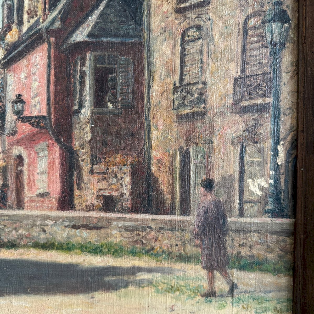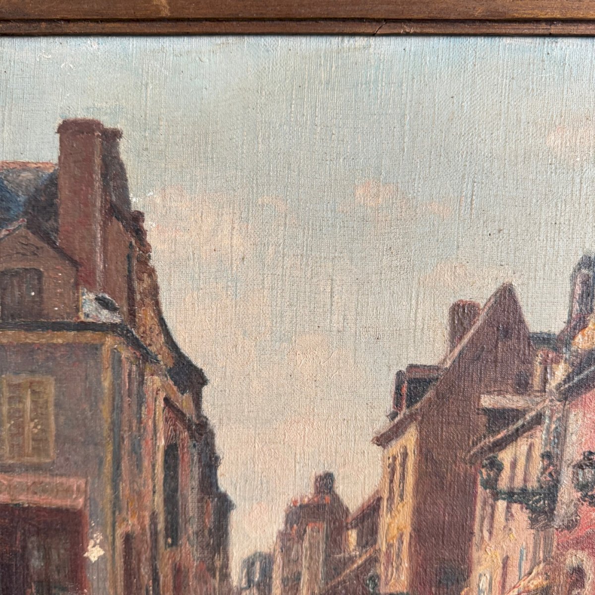 Huile sur toile XXe représentant une scène de rue par Jacques Louis Barcat A5657 Cette huile sur toile est de belle facture avec une jolie touche, elle est signée J. Barcat.  C'est un travail des années 20 ou 30. Le cadre est en bois. L'œuvre n'a pas été restaurée, ni nettoyée, notons sur la toile des manques et enfoncement en bas à gauche, des chocs et des rayures sur le cadre. Nos photos vous permettent d’apprécier la qualité de l’œuvre. Pour l’état, merci de bien détailler les photos. N’hésitez pas à zoomer. Les photos font partie intégrante de la description. Dimensions  : - Cadre Hauteur : 44,5 cm Largeur : 52,5 cm Épaisseur : 5,7 cm - Œuvre Hauteur : 36,7 cm Largeur : 44,8 cm A :  2HZNGU9BWX S :  S4V2SQPA P :  1560855   Je reste à votre disposition pour toute question. Authenticité:Inconnu Poids:Inconnue Type:Huile Hauteur:44,5 cm Style:Non-spécifié Genre:Inconnu Longueur:cm Caractéristiques:Encadré, Signé, Sur toile Largeur:52,5 cm