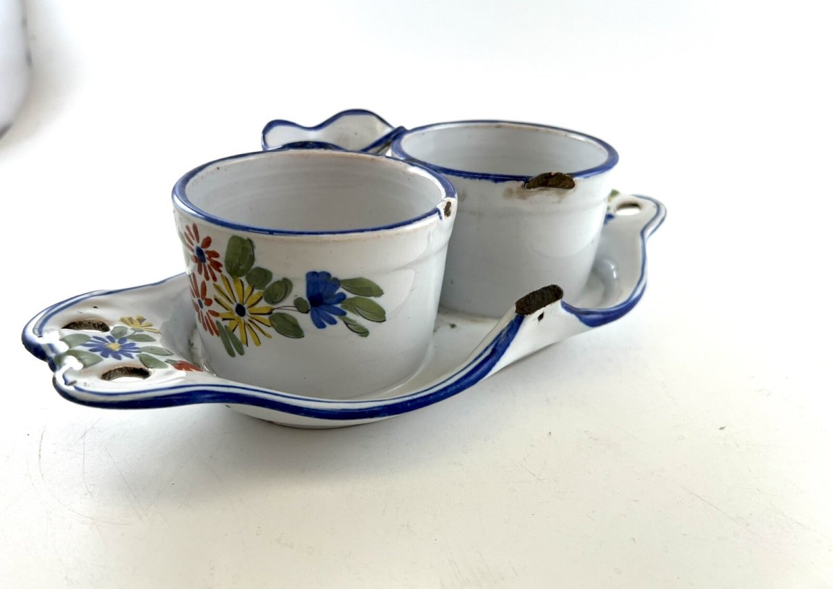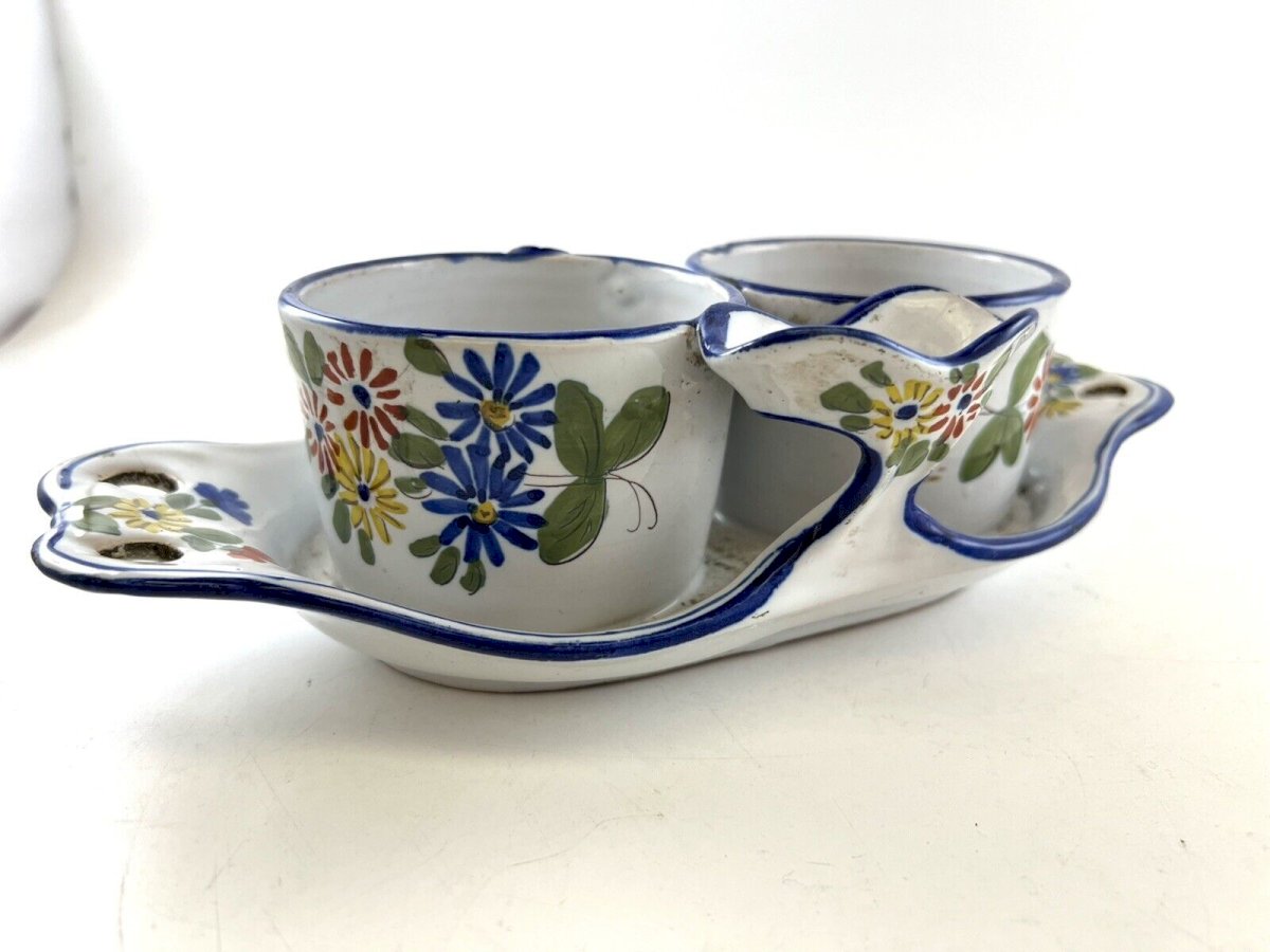 Huilier Vinaigrier Lunéville KG St-Clément – Faïence Fleurie Peinte Main XIXe