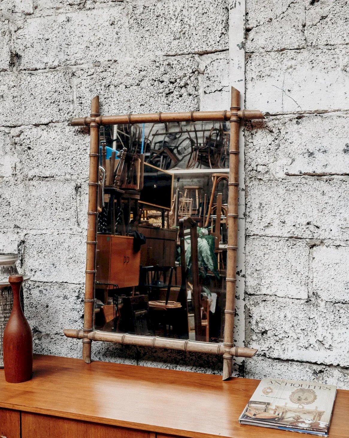 Apportez une touche d’élégance naturelle à votre intérieur avec ce miroir rectangulaire au cadre en bambou. Son encadrement chaleureux et moderne s’adapte parfaitement à tous les styles, du bohème au scandinave. Idéal pour agrandir visuellement l’espace, il trouvera sa place aussi bien dans une entrée que dans une chambre ou un salon. Un bel équilibre entre utilité et esthétique. Une pièce décorative qui allie charme et simplicité. Longueur : 75 cm Hauteur : 102 cm Profondeur : 3 cm État:Occasion: Objet ayant été utilisé. Objet présentant quelques marques d'usure superficielle, ...Occasion: Objet ayant été utilisé. Objet présentant quelques marques d'usure superficielle, entièrement opérationnel et fonctionnant correctement. Il peut s'agir d'un modèle de démonstration ou d'un objet retourné en magasin après une courte période d'utilisation. les éventuelles imperfections. Marque:Debongout Type:Produit chiné Matériau:Verre, Bambou Style:Contemporain
