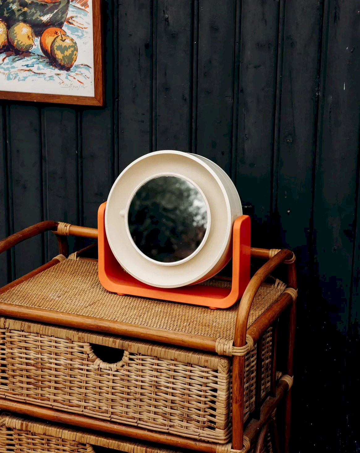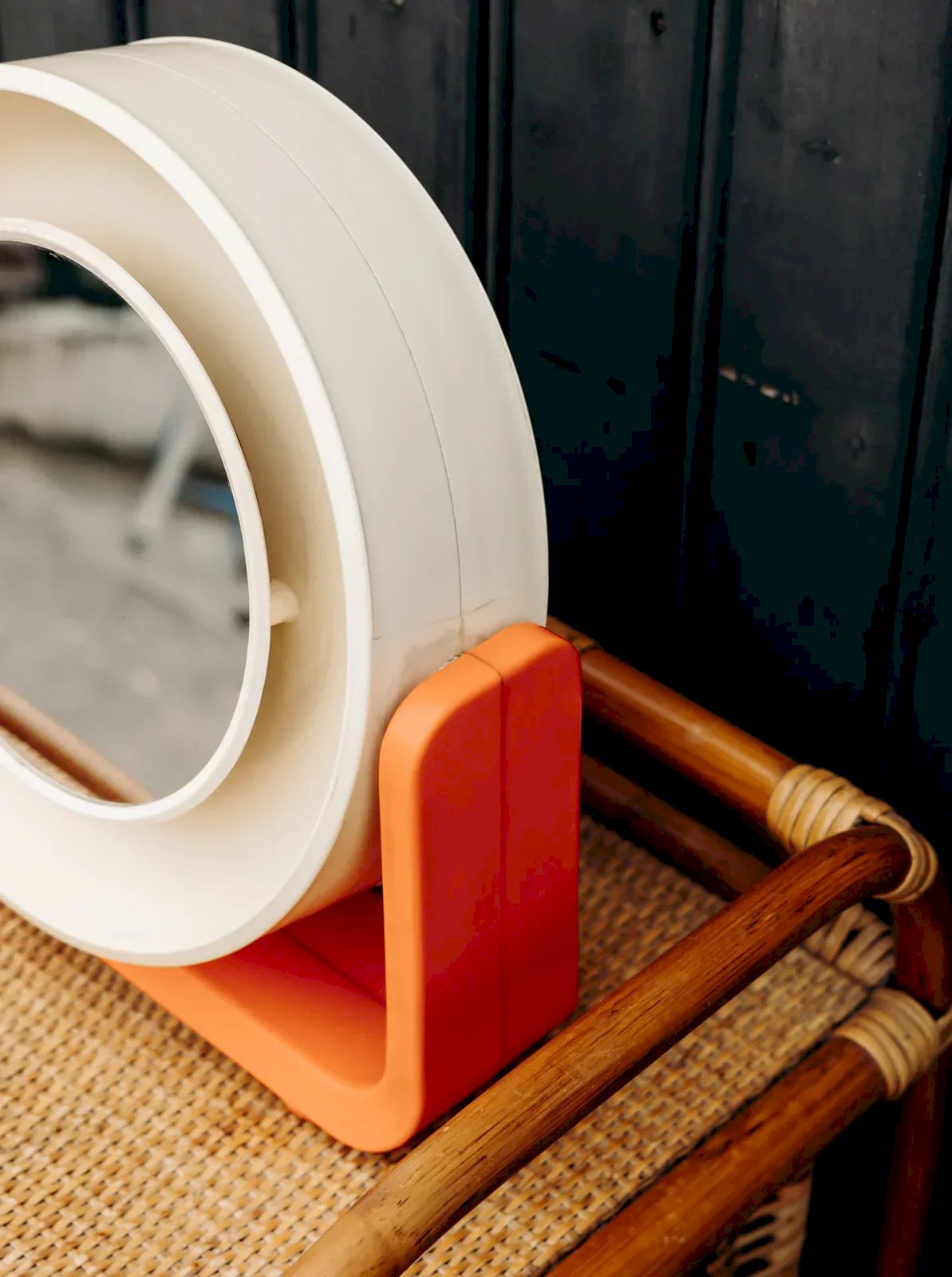 Ajoutez une touche de couleur et de style 70's à votre espace avec ce miroir en plastique moulé de la marque ALLIBERT. Arborant des teintes de jaune clair et d'orange, il s'intègre parfaitement dans divers décors. Doté d’un rétro-éclairage, il crée une ambiance chaleureuse tout en étant fonctionnel. Ce miroir peut être facilement accroché au mur, faisant de lui un accessoire à la fois pratique et esthétique pour votre intérieur. Longueur du pied : 30 cm Largeur : 7,5 cm Hauteur : 28,5 cm Diamètre : 16,5 cm État:Occasion: Objet ayant été utilisé. Objet présentant quelques marques d'usure superficielle, ...Occasion: Objet ayant été utilisé. Objet présentant quelques marques d'usure superficielle, entièrement opérationnel et fonctionnant correctement. Il peut s'agir d'un modèle de démonstration ou d'un objet retourné en magasin après une courte période d'utilisation. les éventuelles imperfections. Marque:Debongout Type:Produit chiné Matériau:Plastique Style:Contemporain
