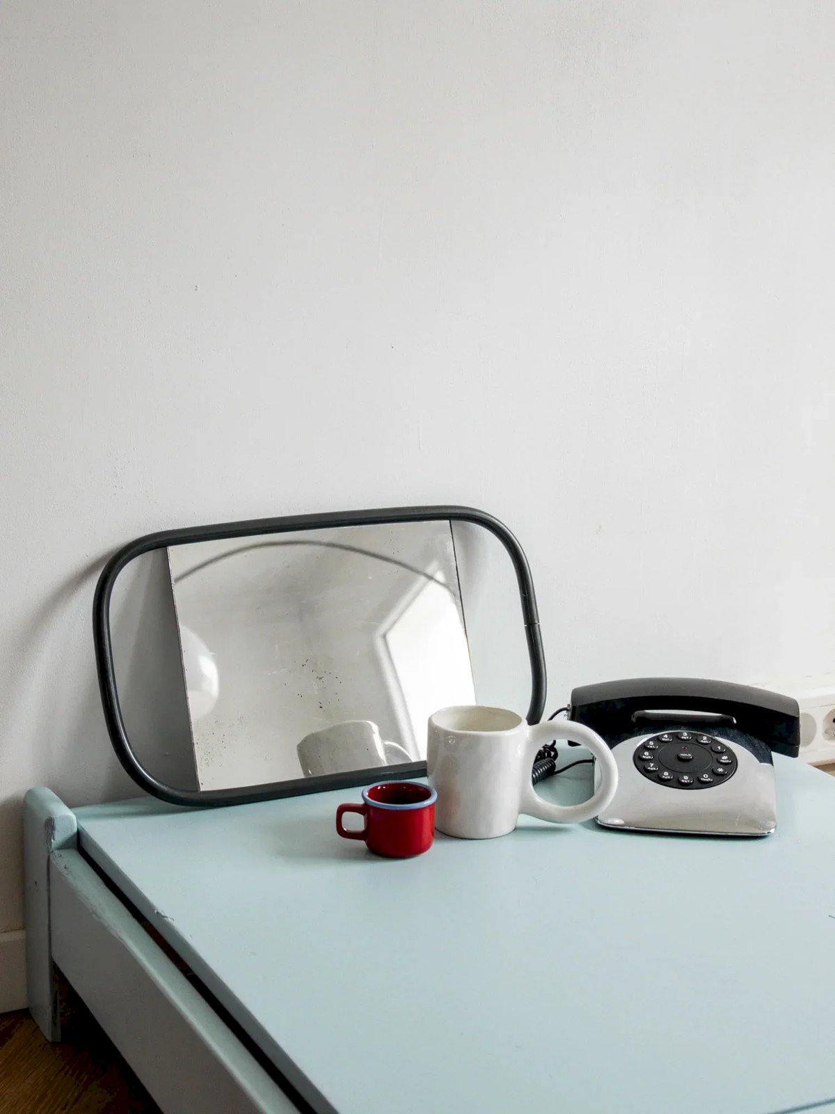 Découvrez notre élégant miroir à 2 faces, astucieusement conçu avec des poignées pour une utilisation facile. Sa structure en plastique gris foncé ajoute une touche moderne à votre intérieur tout en offrant une grande praticité. Bien que le miroir présente quelques légères piqûres, il reste un accessoire fonctionnel et stylé, idéal pour votre routine quotidienne ou pour des retouches rapides. Ajoutez ce miroir à votre décoration et alliez style et fonctionnalité ! Largeur : 24 cm Hauteur : 42 cm Profondeur : 1 cm État:Occasion: Objet ayant été utilisé. Objet présentant quelques marques d'usure superficielle, ...Occasion: Objet ayant été utilisé. Objet présentant quelques marques d'usure superficielle, entièrement opérationnel et fonctionnant correctement. Il peut s'agir d'un modèle de démonstration ou d'un objet retourné en magasin après une courte période d'utilisation. les éventuelles imperfections. Marque:Debongout Type:Produit chiné Matériau:Verre, Plastique Style:Contemporain