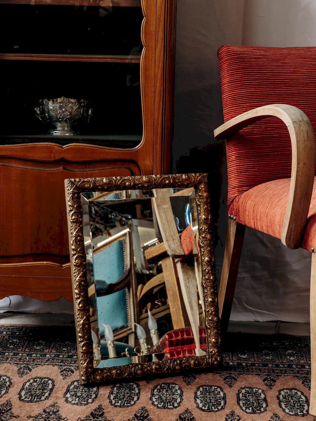 Sublimez votre intérieur avec ce miroir rectangulaire en bois aux dorures délicates, pourvu d'une glace biseautée qui capte la lumière avec raffinement. Son format élancé s'intègre au-dessus d'une console, d'une cheminée ou dans une entrée, apportant verticalité et profondeur à la pièce. Le cadre en bois, finement travaillé et patiné, confère un style classique et chaleureux, parfait pour une décoration à la fois sobre et inspirante. Longueur : 37 cm Largeur : 4 cm Hauteur : 49 cm État:Occasion: Objet ayant été utilisé. Objet présentant quelques marques d'usure superficielle, ...Occasion: Objet ayant été utilisé. Objet présentant quelques marques d'usure superficielle, entièrement opérationnel et fonctionnant correctement. Il peut s'agir d'un modèle de démonstration ou d'un objet retourné en magasin après une courte période d'utilisation. les éventuelles imperfections. Marque:Debongout Type:Produit chiné Matériau:Bois, Verre Style:Contemporain