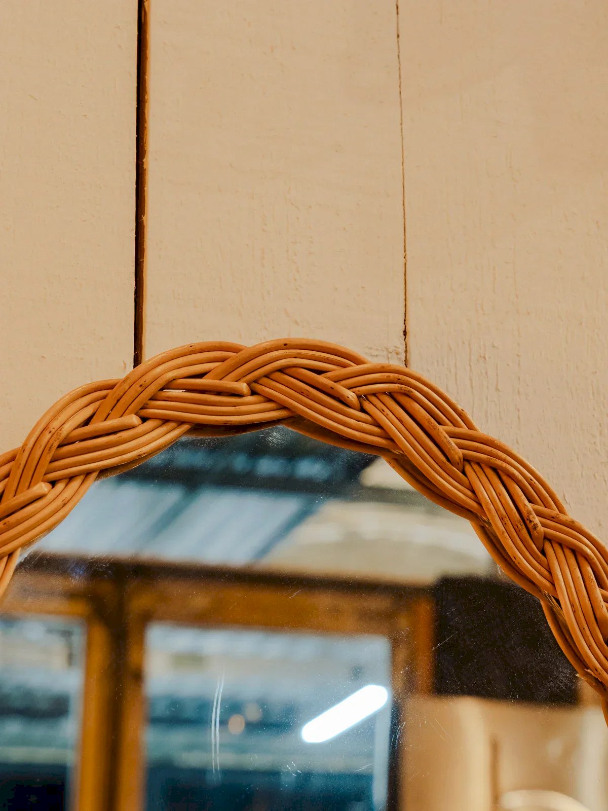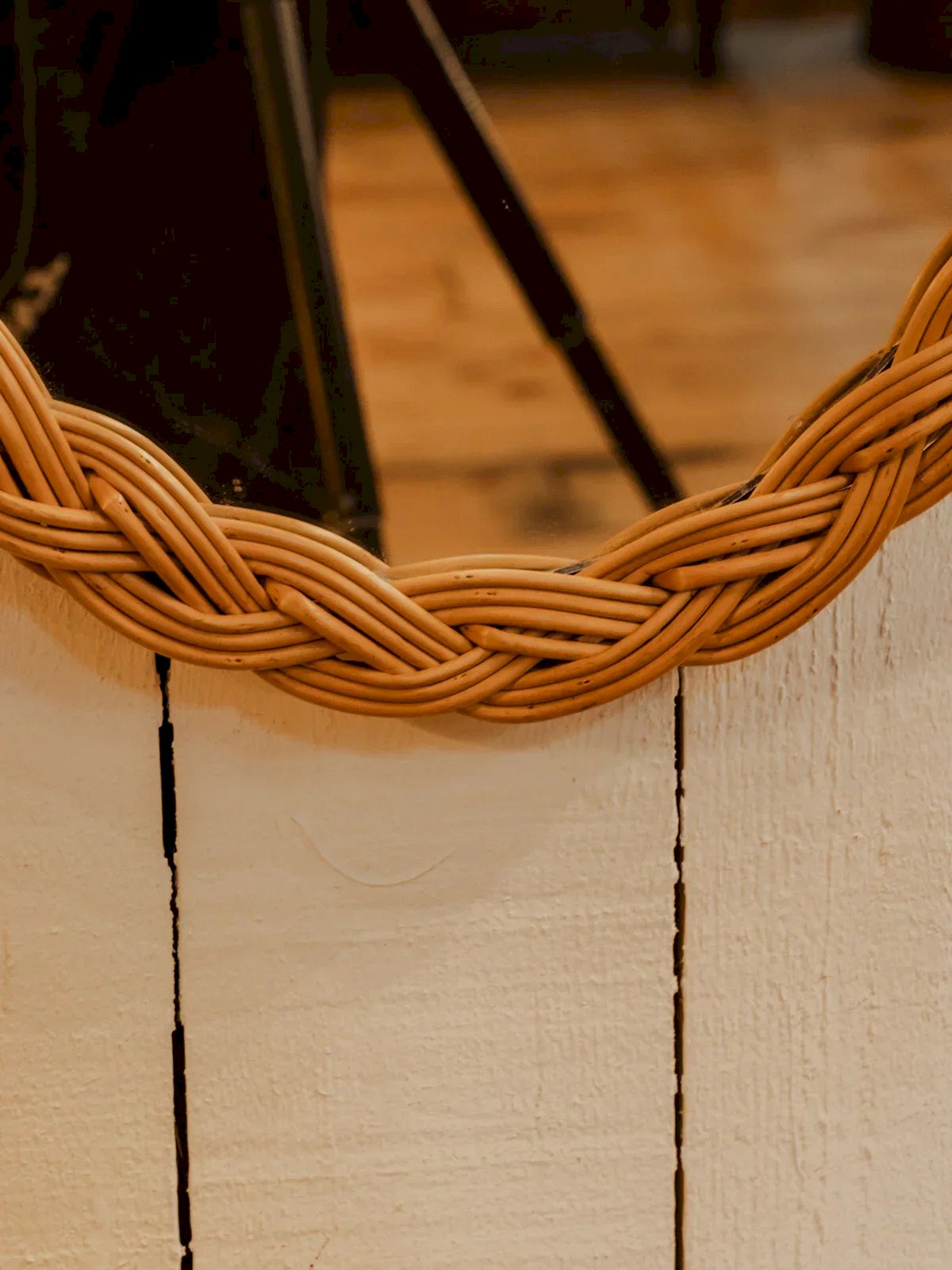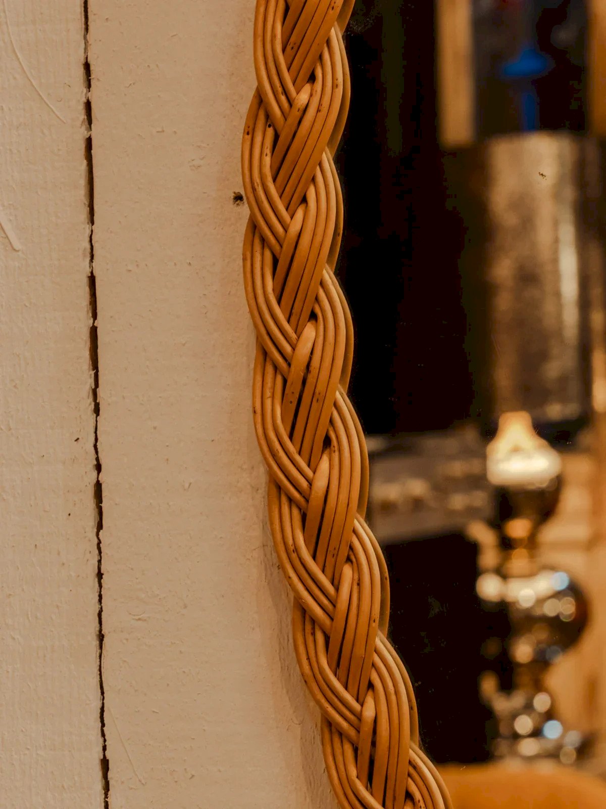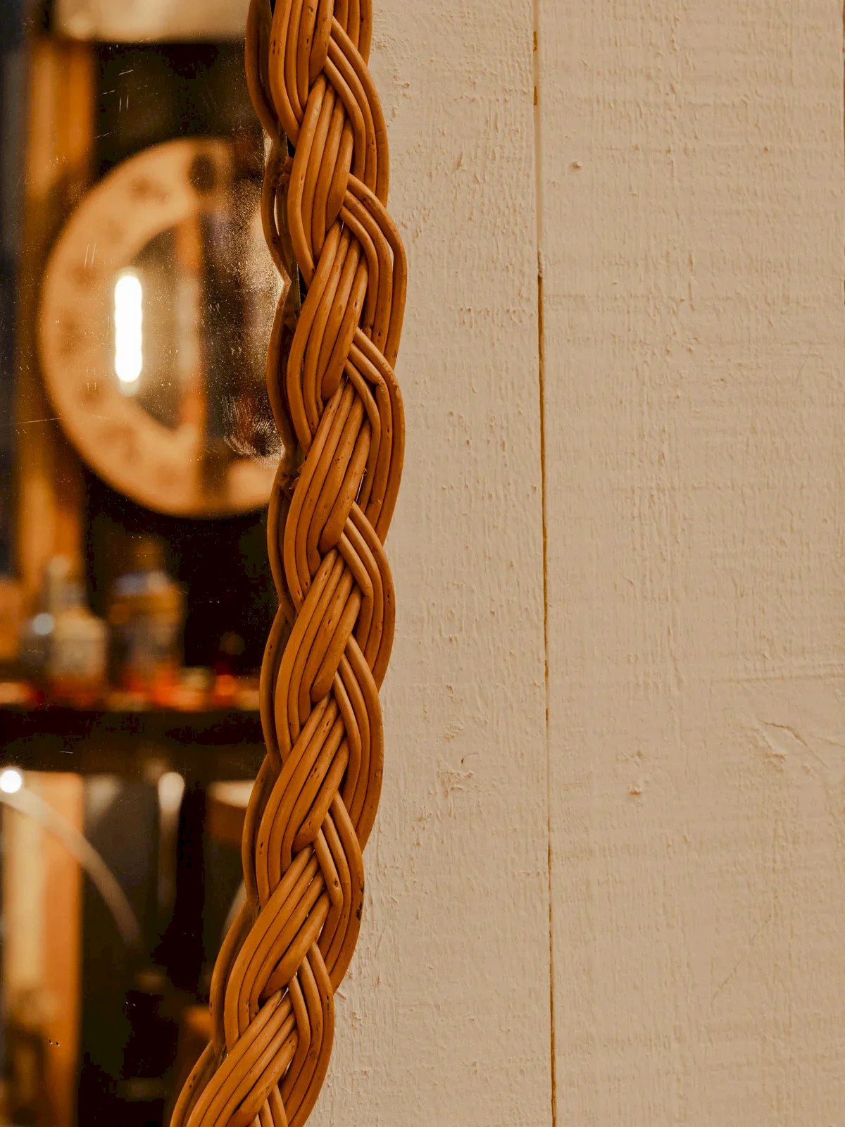 Découvrez ce miroir ovale au cadre en osier tressé, empreint d'un charme vintage et d'une texture artisanale. Son format élancé apporte une présence discrète tout en réfléchissant la lumière, idéal pour une entrée, un couloir ou un coin coiffeuse. Le tressage crée une atmosphère chaleureuse et bohème qui s'harmonise avec des intérieurs contemporains ou rétro, apportant caractère et douceur sans envahir l'espace. Longueur : 38 cm Largeur : 2,5 cm Hauteur : 72 cm État:Occasion: Objet ayant été utilisé. Objet présentant quelques marques d'usure superficielle, ...Occasion: Objet ayant été utilisé. Objet présentant quelques marques d'usure superficielle, entièrement opérationnel et fonctionnant correctement. Il peut s'agir d'un modèle de démonstration ou d'un objet retourné en magasin après une courte période d'utilisation. les éventuelles imperfections. Marque:Debongout Type:Produit chiné Matériau:Osier, Verre Style:Contemporain