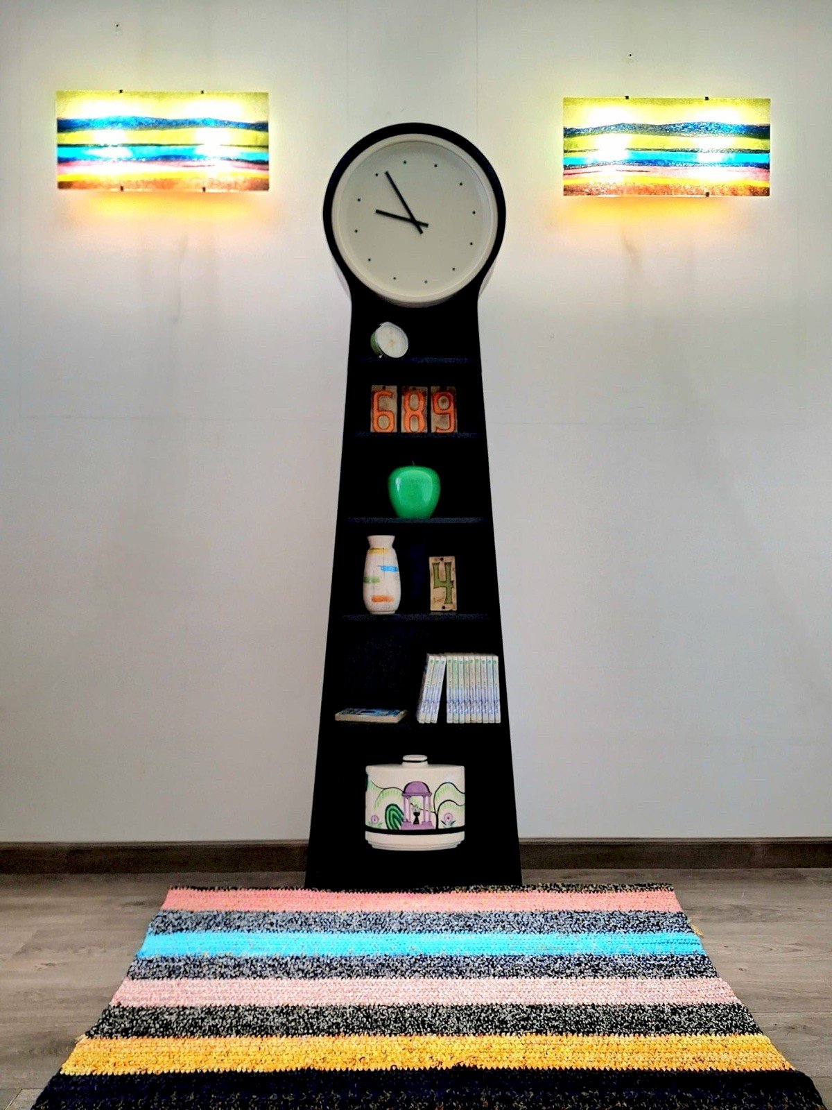 Merci de m’écrire si vous souhaitez me faire une offre. IKEA appliques Gyllen et meuble bibliothèque, luminaires vintage Le prix indiqué dans l’annonce est pour le lot. Je peux dissocier. 170€ Lampes murales Gyllen. Les appliques peuvent être utilisées à l’horizontale ou à la verticale. Fonctionnelles. Dimensions des appliques : 56x9,5xh26cm. 140€ L’horloge ne fonctionne pas. Quelques traces d’usage sur les étagères. Certaines pattes pour accrocher l’horloge sont cassées. Étiquette IKEA PS. Design Carl Hagerling. Dimensions du meuble : 56x17xh198cm. Pas de livraison mondial relay ou autre relais. Remise à mon domicile ou livraison possible via transporteur exclusivement (ex 40€ pour les appliques ou le meuble vers Paris et la région parisienne, me contacter pour d’autres destinations). Les délais de livraison de 2 à 4 jours sont imposés par et sont donc donnés à titre purement indicatif. Décoration lampe chaussures scandinave rangement Type:Applique