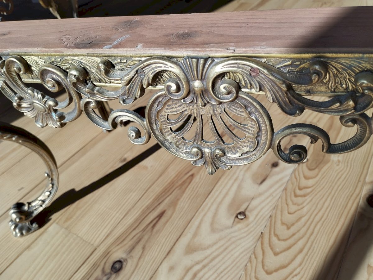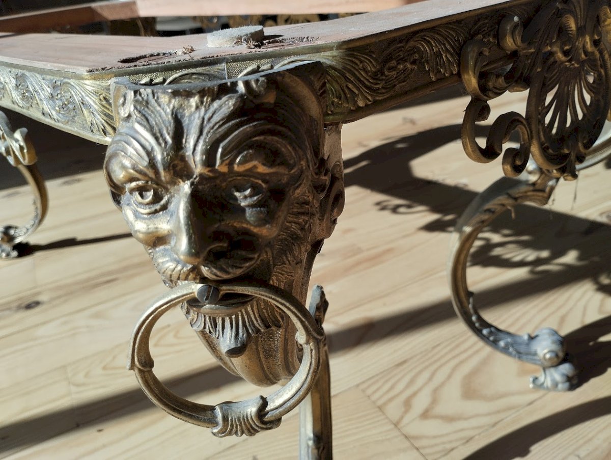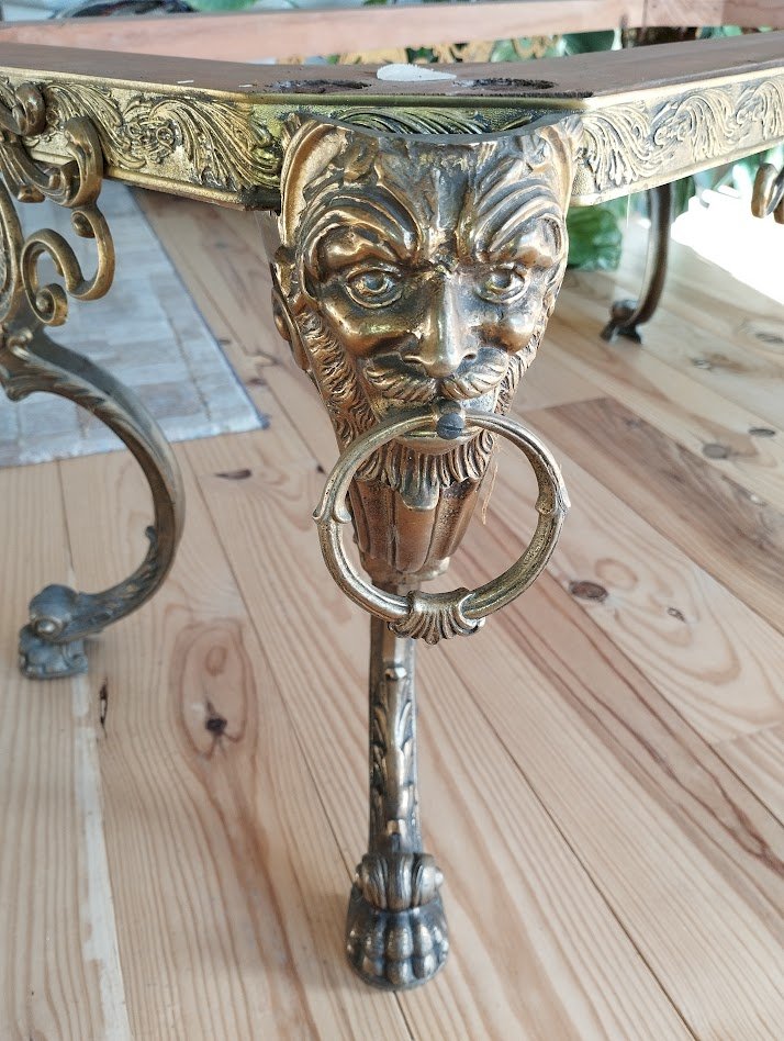 Important piètement de table basse ancien, en laiton massif finement ciselé, datant de la fin du XIXe siècle, époque Napoléon III.