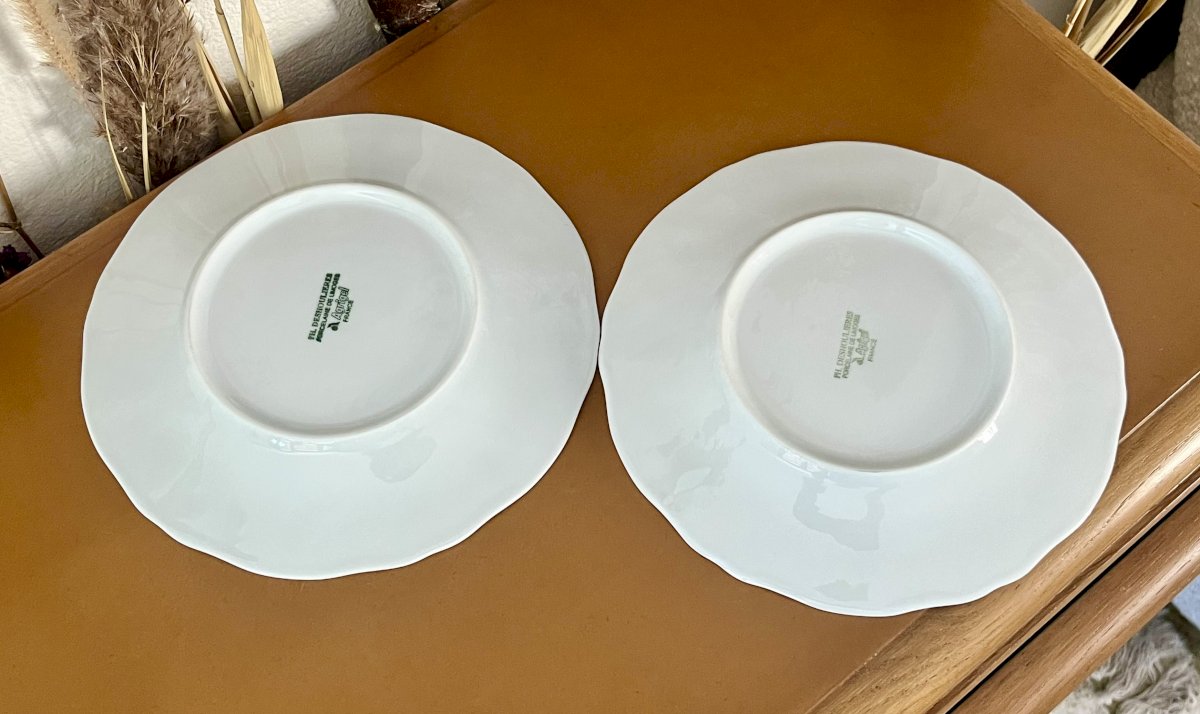 - 1 minuscule ébréchure sur le contour de chaque assiette