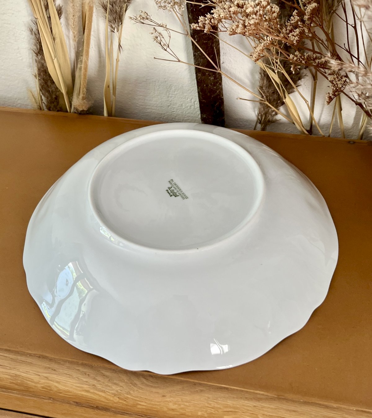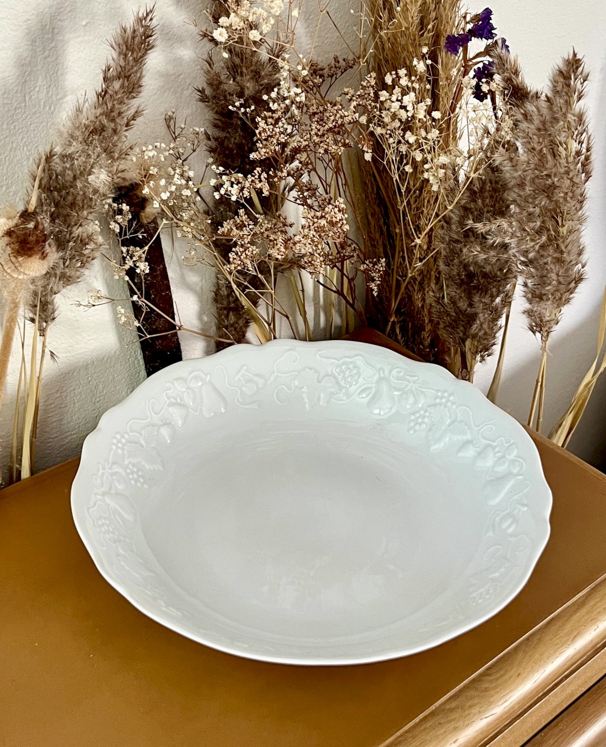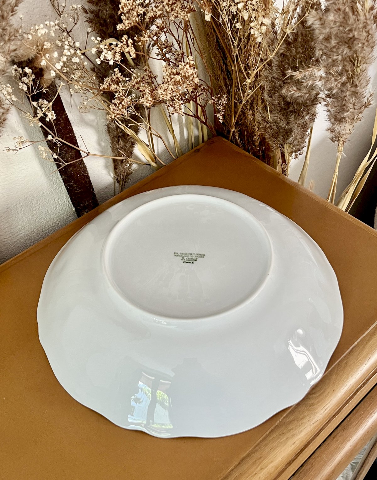 - Grand plat de service creux porcelaine fine de Limoges blanche vintage/ancien