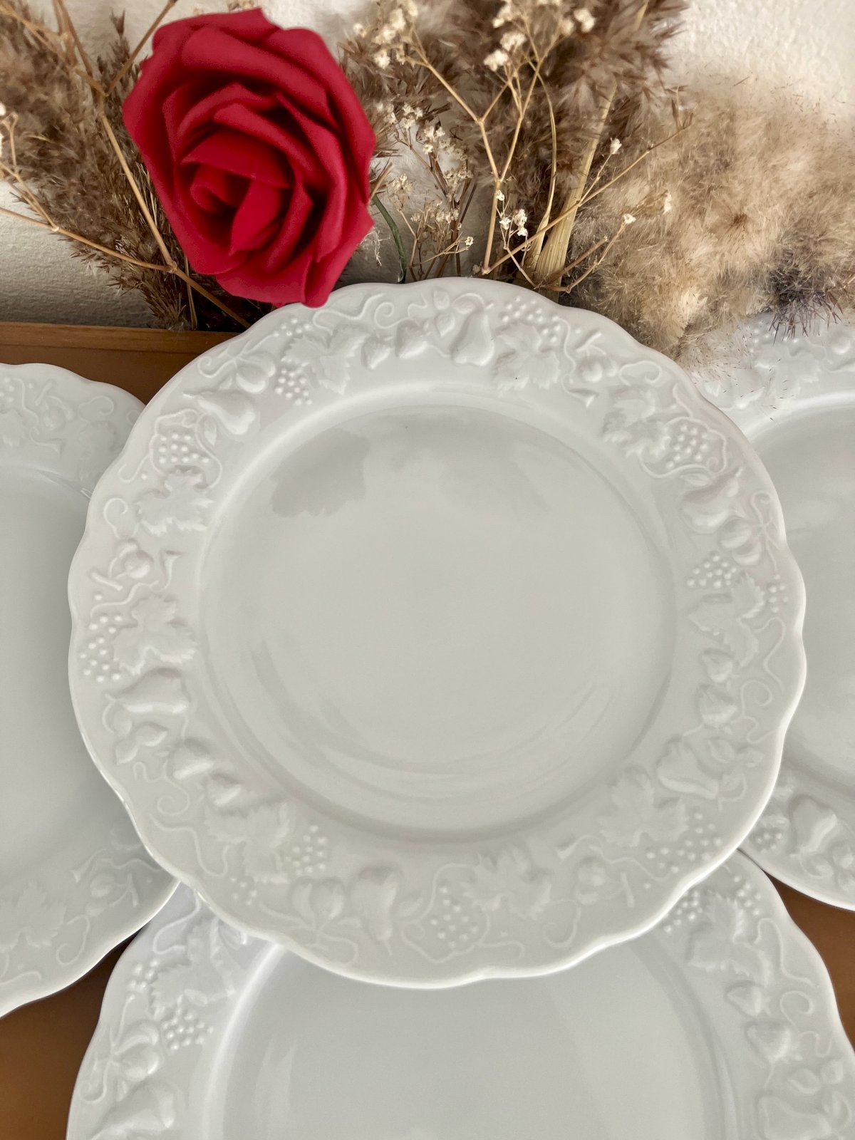 Suite de 6 assiettes à dessert Porcelaine blanche décor floral Arpo...