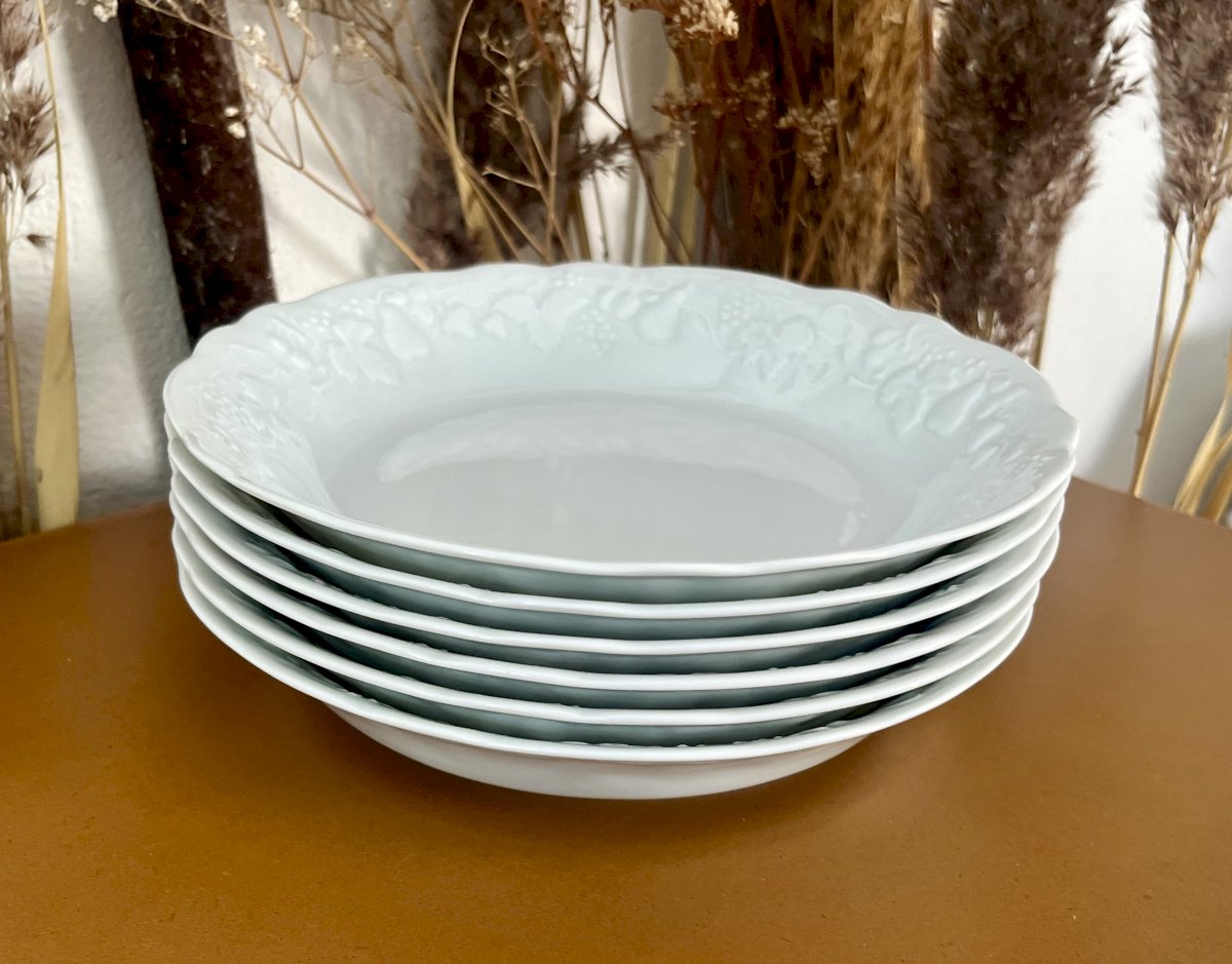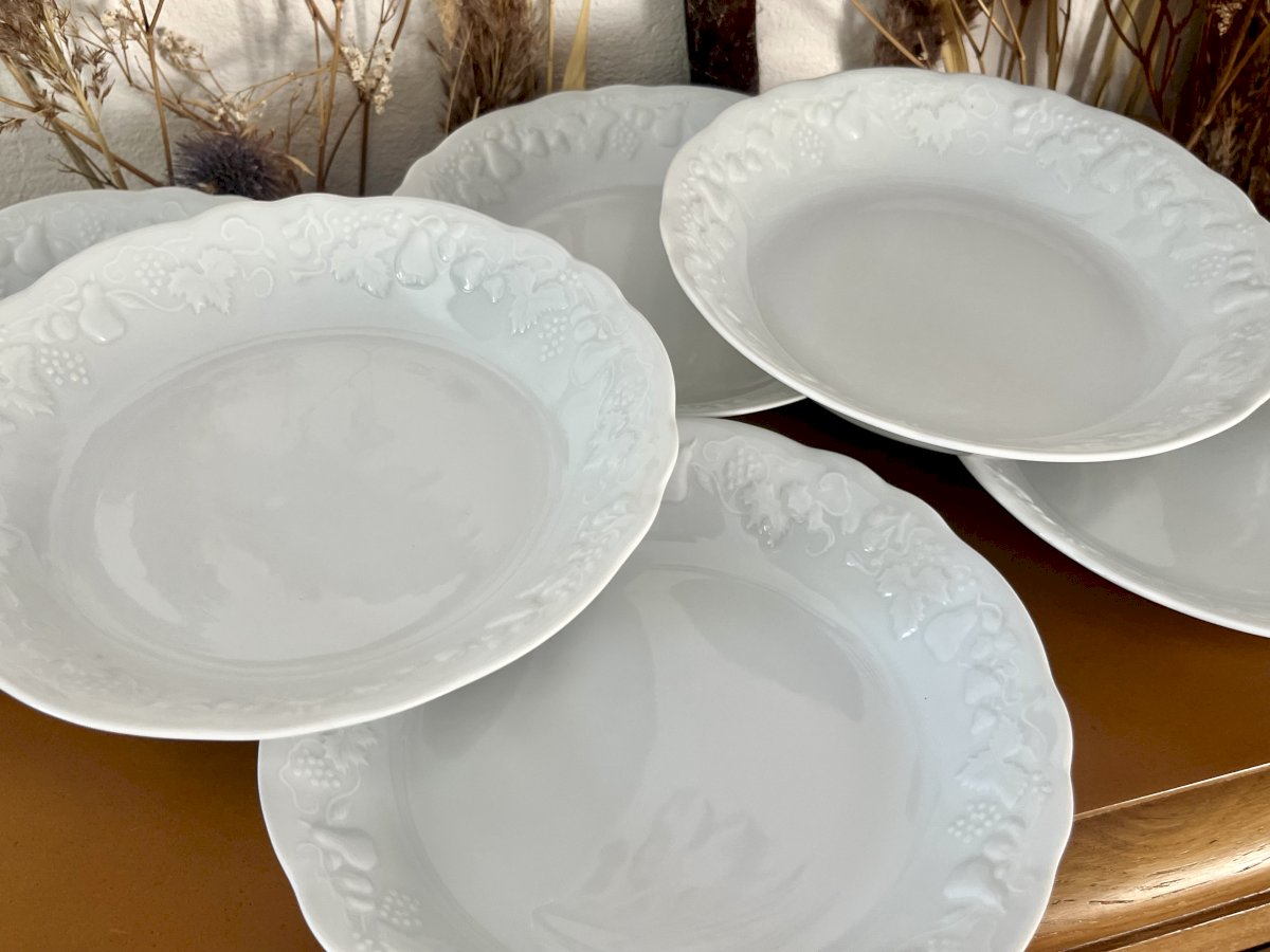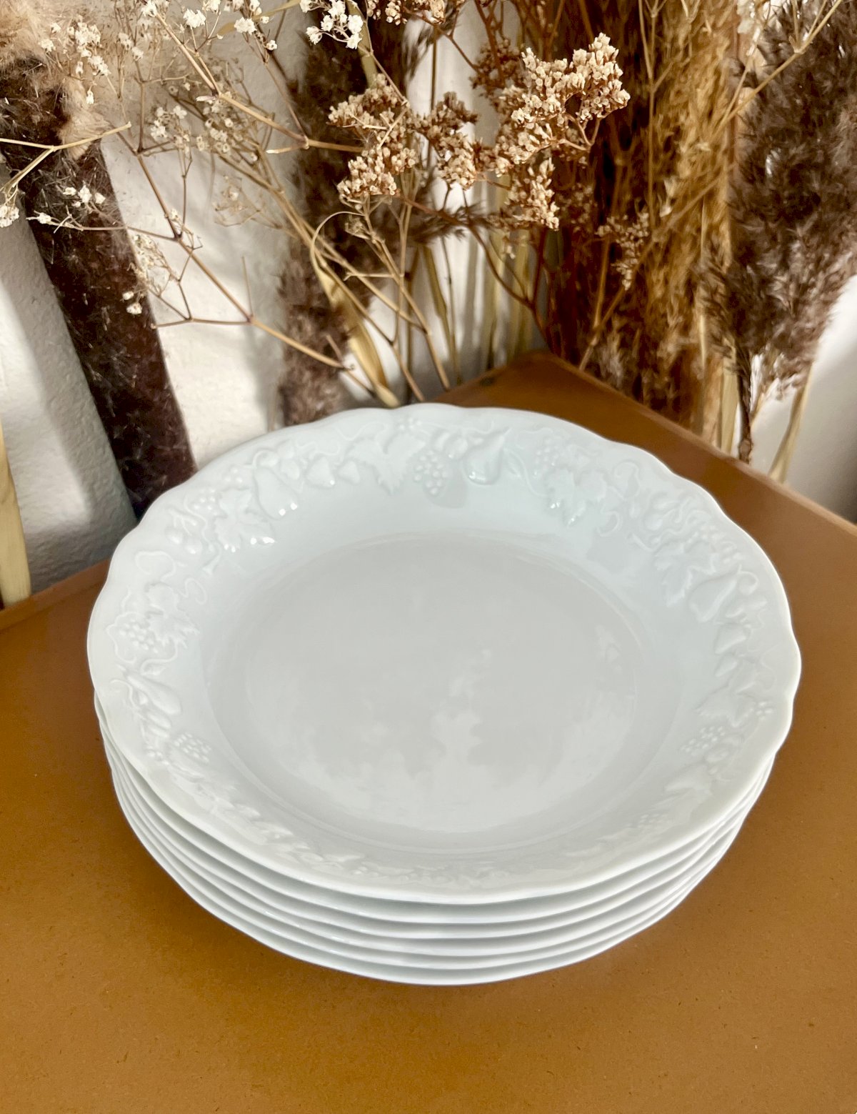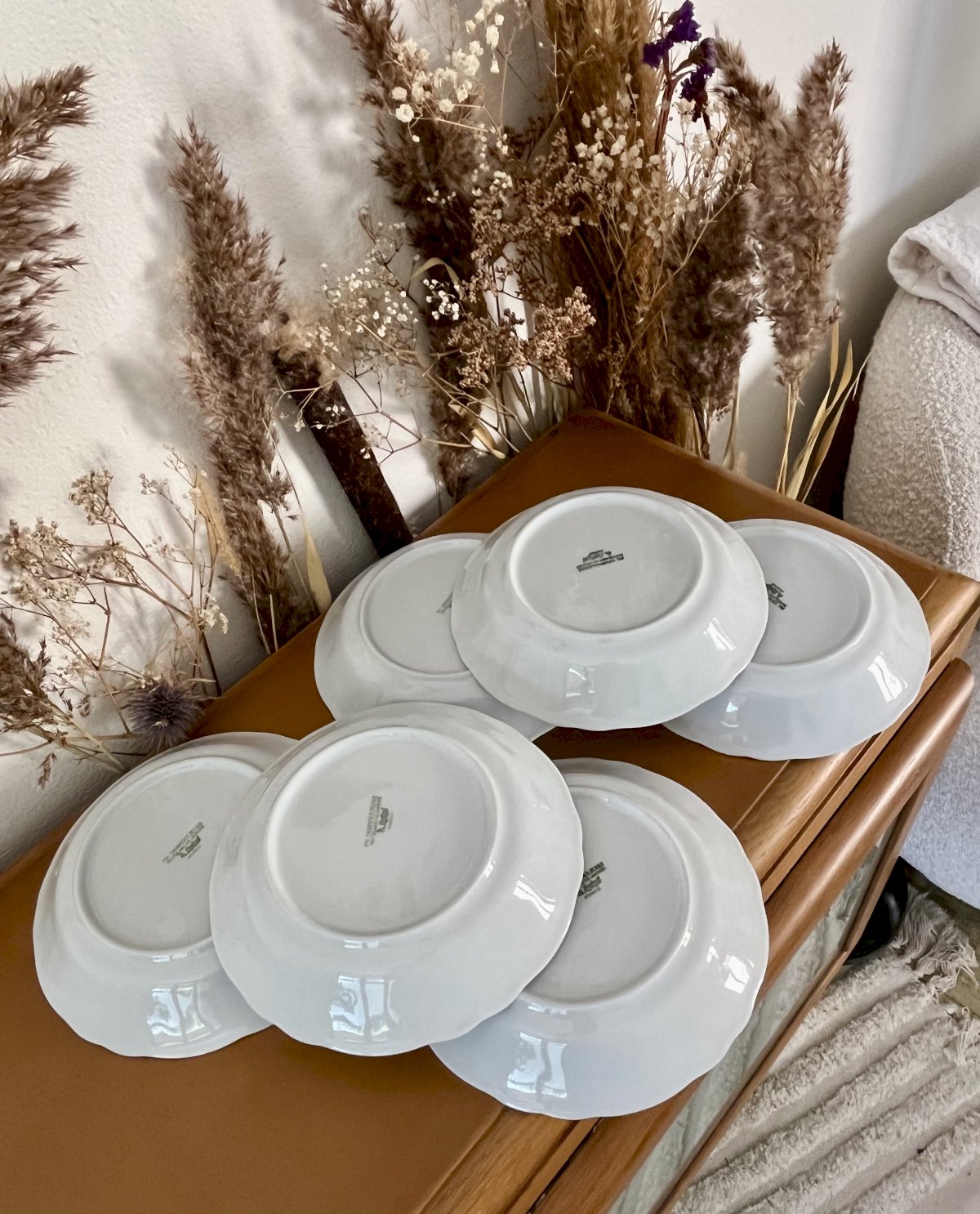 6 ASSIETTES CREUSES PORCELAINE LIMOGES DECOR BRANCHE AUBEPINE FOND DE STOCK
