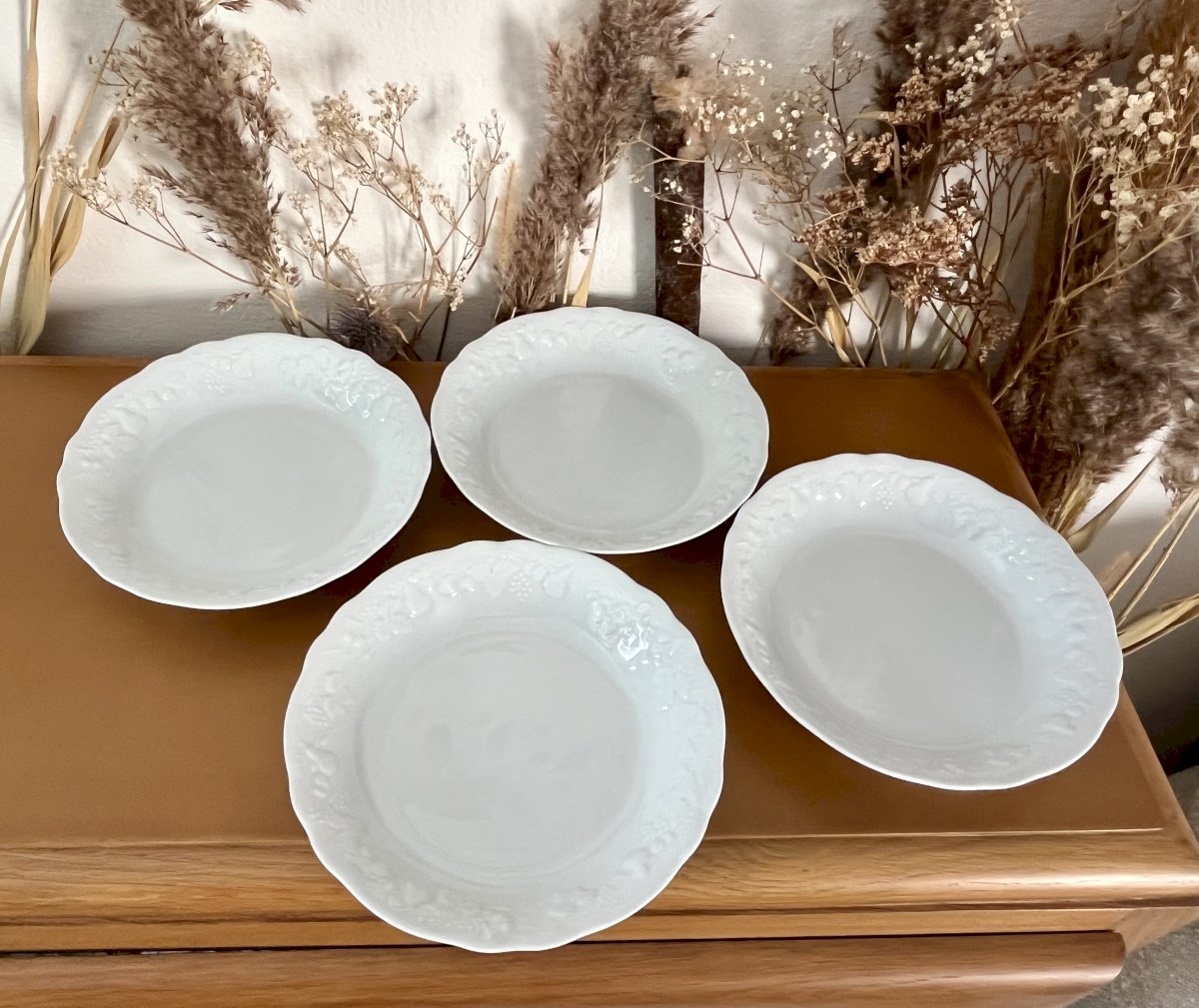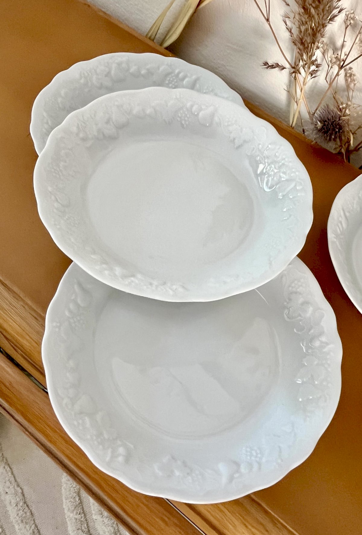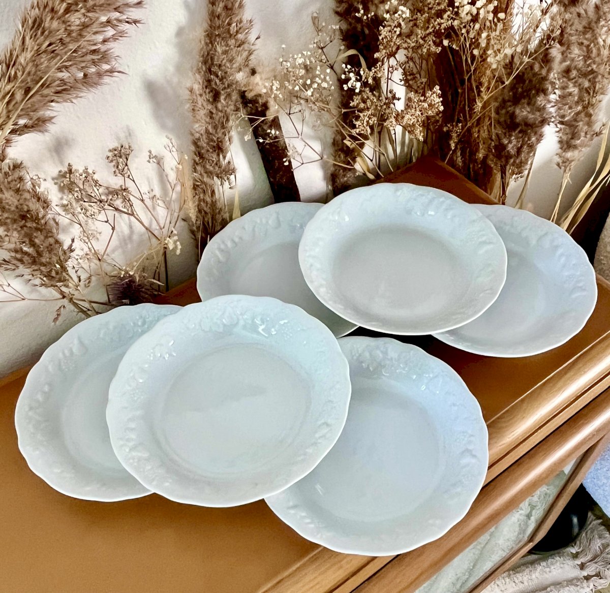 6 ASSIETTES CREUSES PORCELAINE LIMOGES DECOR BRANCHE AUBEPINE FOND DE STOCK