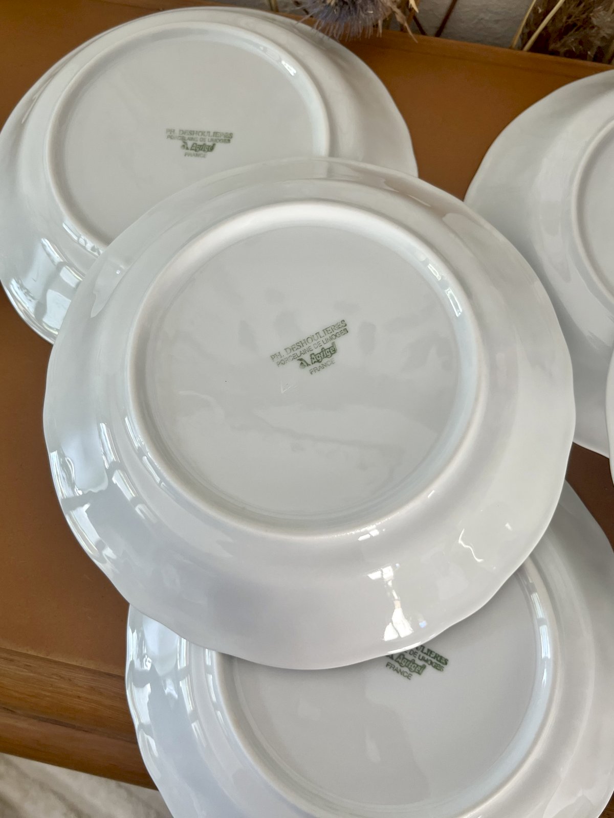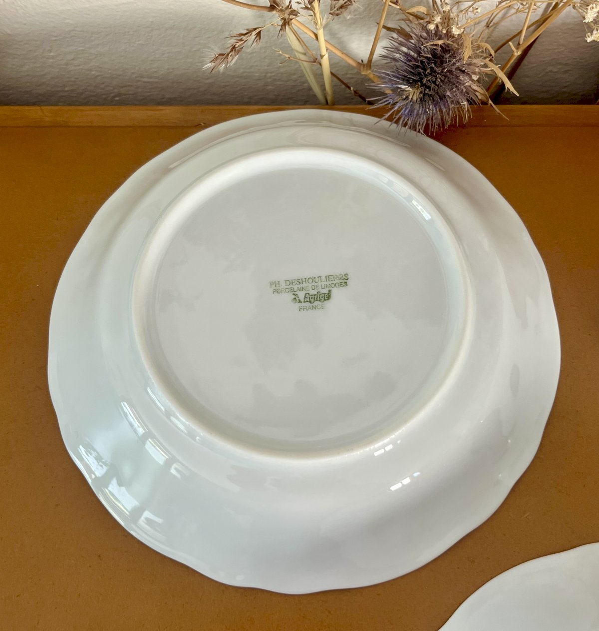 *6 GRANDES ASSIETTES PLATES PORCELAINE LIMOGES PHILIPPE DESHOULIERES BRACIEUX D