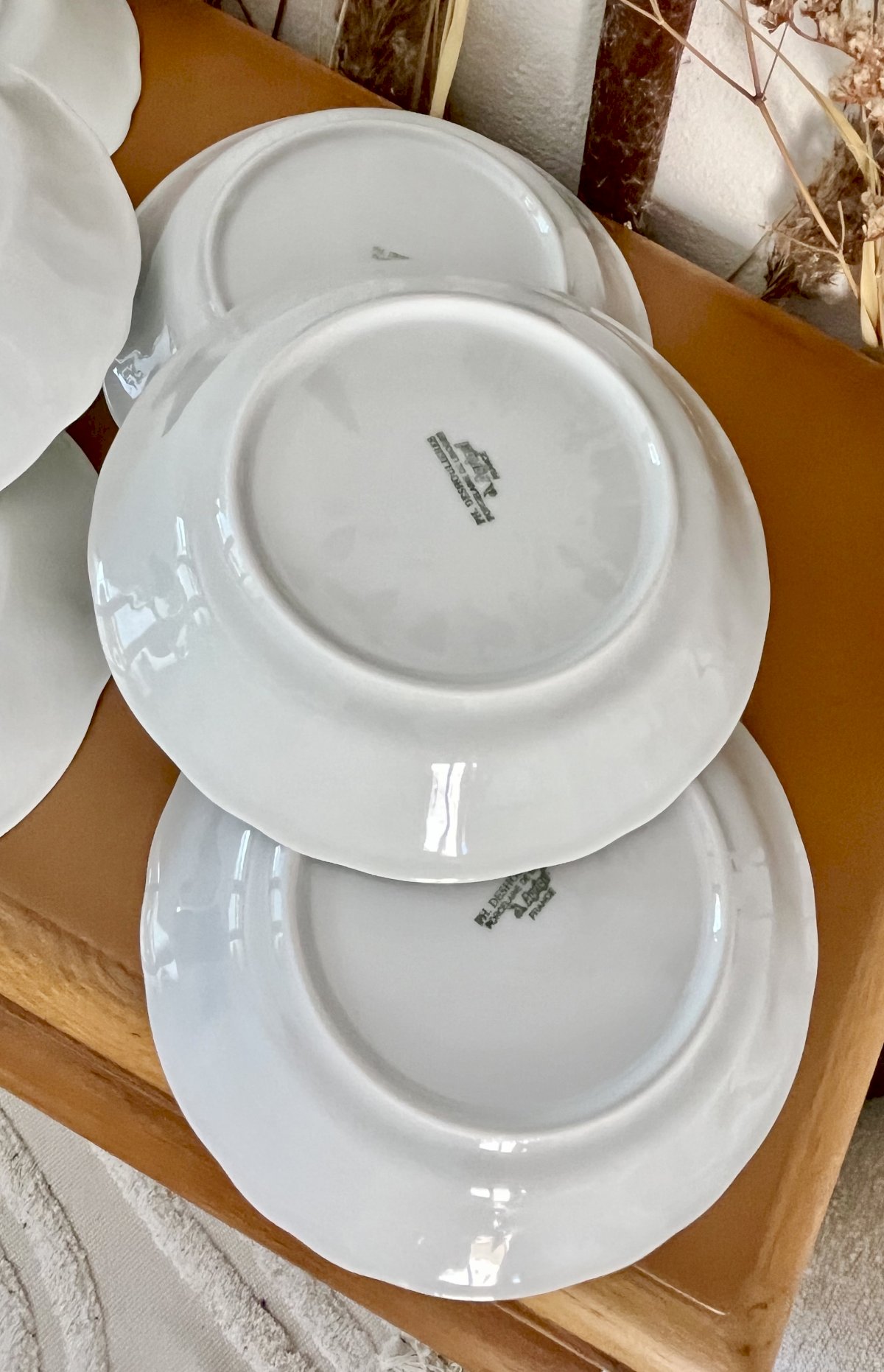 6 ASSIETTES CREUSES PORCELAINE LIMOGES OEILLET de Poète FOND DE STOCK DECO TABLE