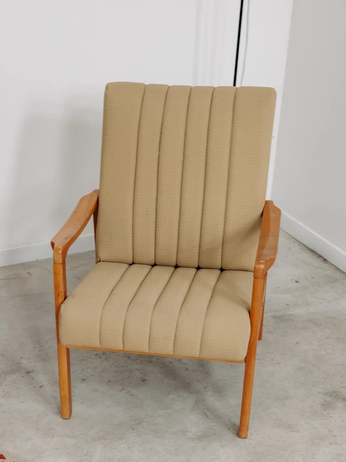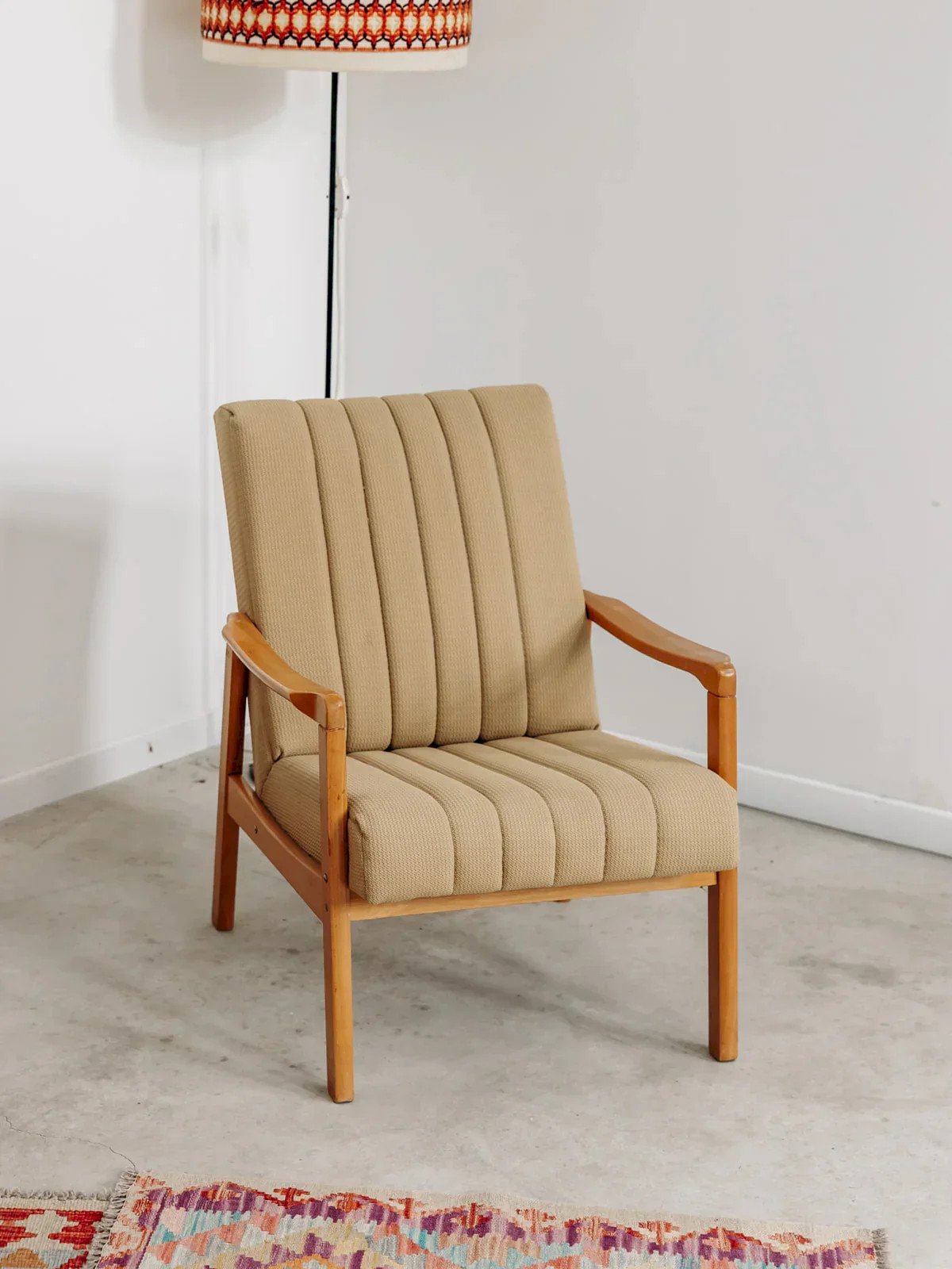 Apportez confort et élégance à votre intérieur avec ce fauteuil à la structure en bois, offrant un design classique et raffiné. Son assise et dossier en tissu beige apportent une touche de douceur et de chaleur, tandis que les détails des accoudoirs courbés ajoutent une touche fine et originale. Parfait pour un salon, un coin lecture ou une chambre, ce fauteuil combine style et confort ! Largeur : 59 cm Hauteur : 79 cm Hauteur d'assise : 40 cm Profondeur : 52 cm État:Occasion: Objet ayant été utilisé. Objet présentant quelques marques d'usure superficielle, ...Occasion: Objet ayant été utilisé. Objet présentant quelques marques d'usure superficielle, entièrement opérationnel et fonctionnant correctement. Il peut s'agir d'un modèle de démonstration ou d'un objet retourné en magasin après une courte période d'utilisation. les éventuelles imperfections. Couleur:Multicouleur Hauteur:Bois, Tissu Largeur:Fauteuils et chauffeuses Marque:Debongout Type:Produit chiné Matériau:Bois, Tissu Style:Contemporain